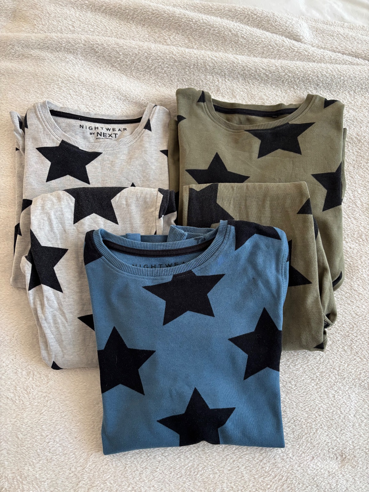 Dvojpack pyžám Next, výborný materiál- teplejšia bavlna. Nosene- veľmi dobrý stav. Modré nemá spodok- tento vrch darujem k dvom ostatnym.