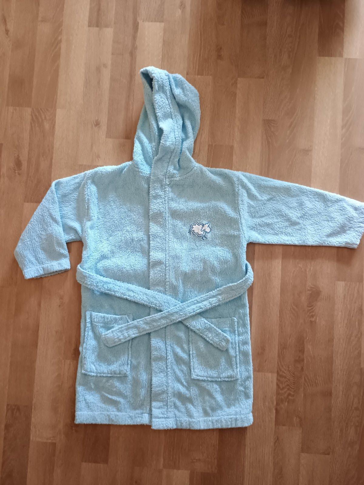 Predám hebučký župan bez poškodení. Veľkosť odhadom 110, preto sa radšej riaďte rozmermi: Dĺžka rukáva od kapucky je 49 cm, dĺžka rukáva od pleca je 41 cm, vnútorná dĺžka rukáva je 31cm. Dĺžka župa...
