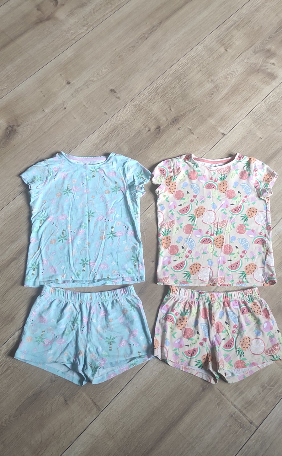 Párkrát oblečené pyžamká, ako nové. Veľkosť 128_134. Cena za obidve spolu 6 €.