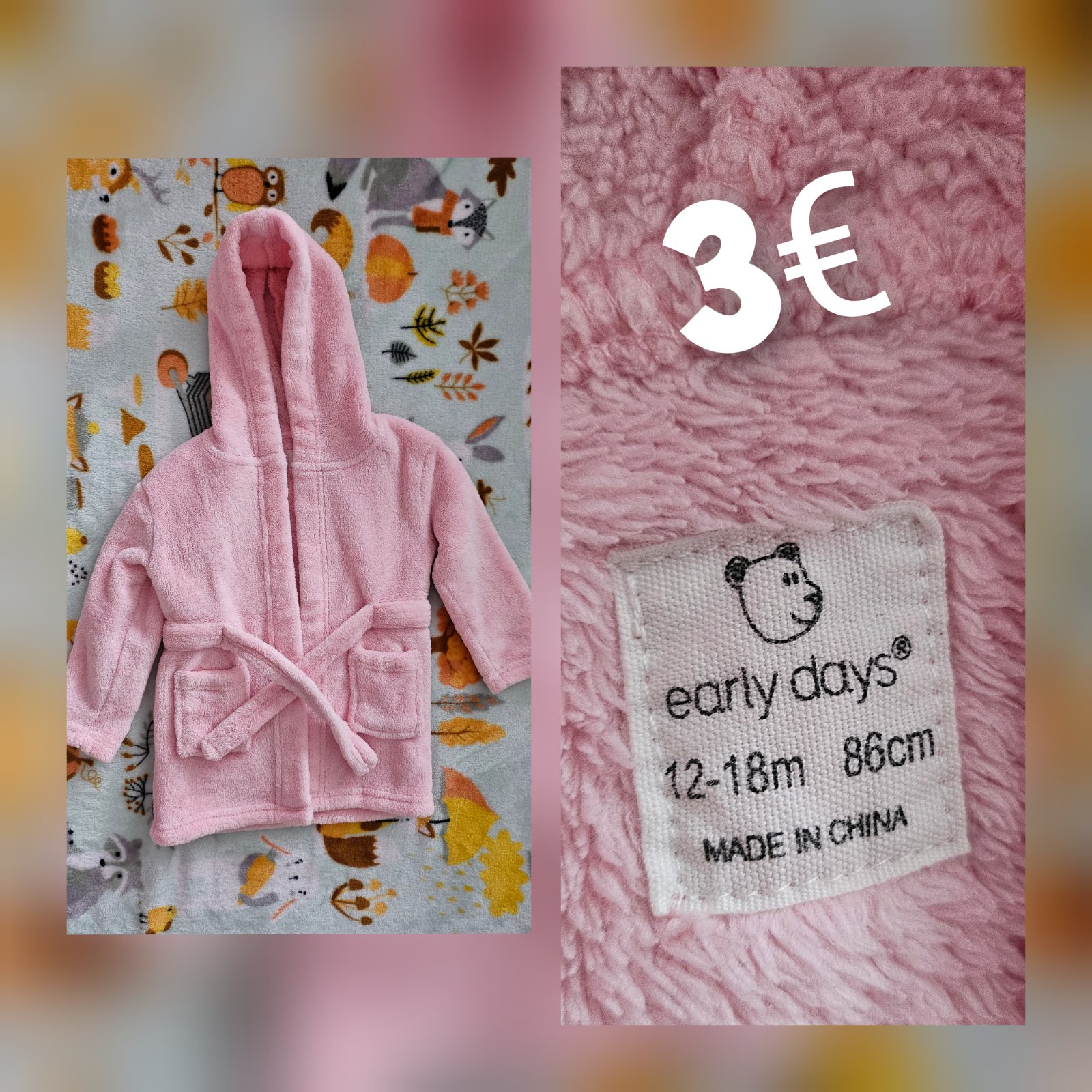 krásny kvalitný župan, veľmi príjemný na dotyk a nosenie. dá sa nosiť aj od veľ 74. bez poškodenia. farba sedí ako na druhej fotke