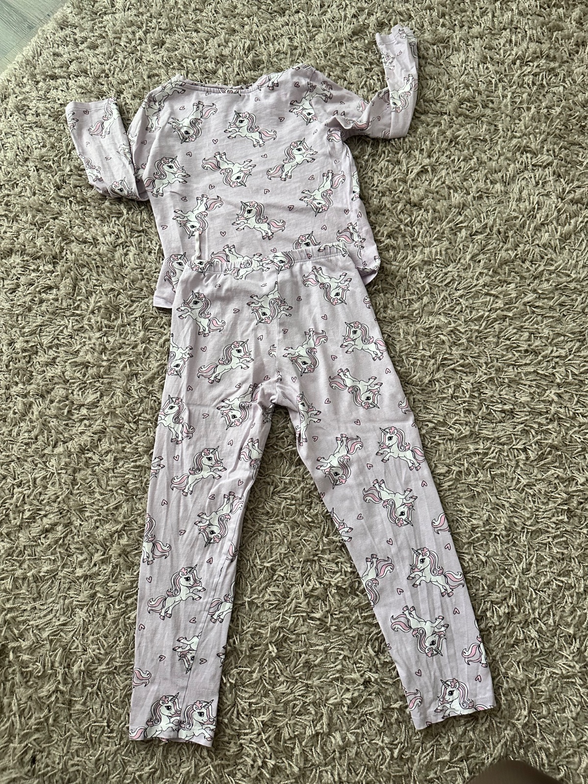 Pyzamko v bledej fialovej farbe po dcerke,pyzamko je v peknom nosenom stave a nema ziadne poskodenia :)