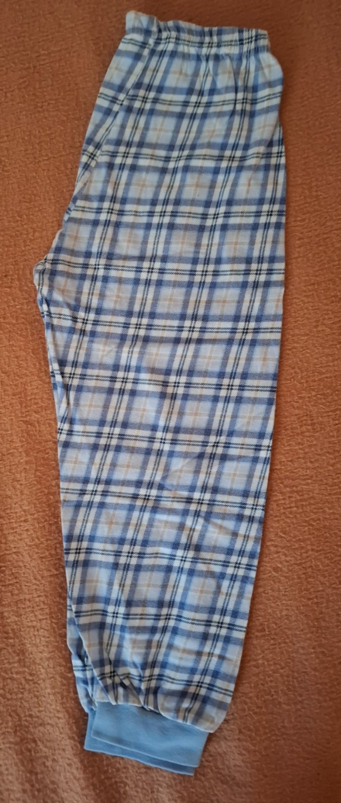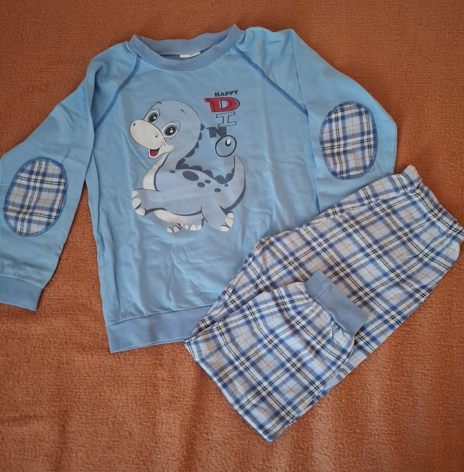 Bavlnené pyžamo, vo veľmi dobrom stave. Dĺžka nohavíc 58 cm, dĺžka vrchný diel 42 cm, obvod pod pazuchami 66 cm.