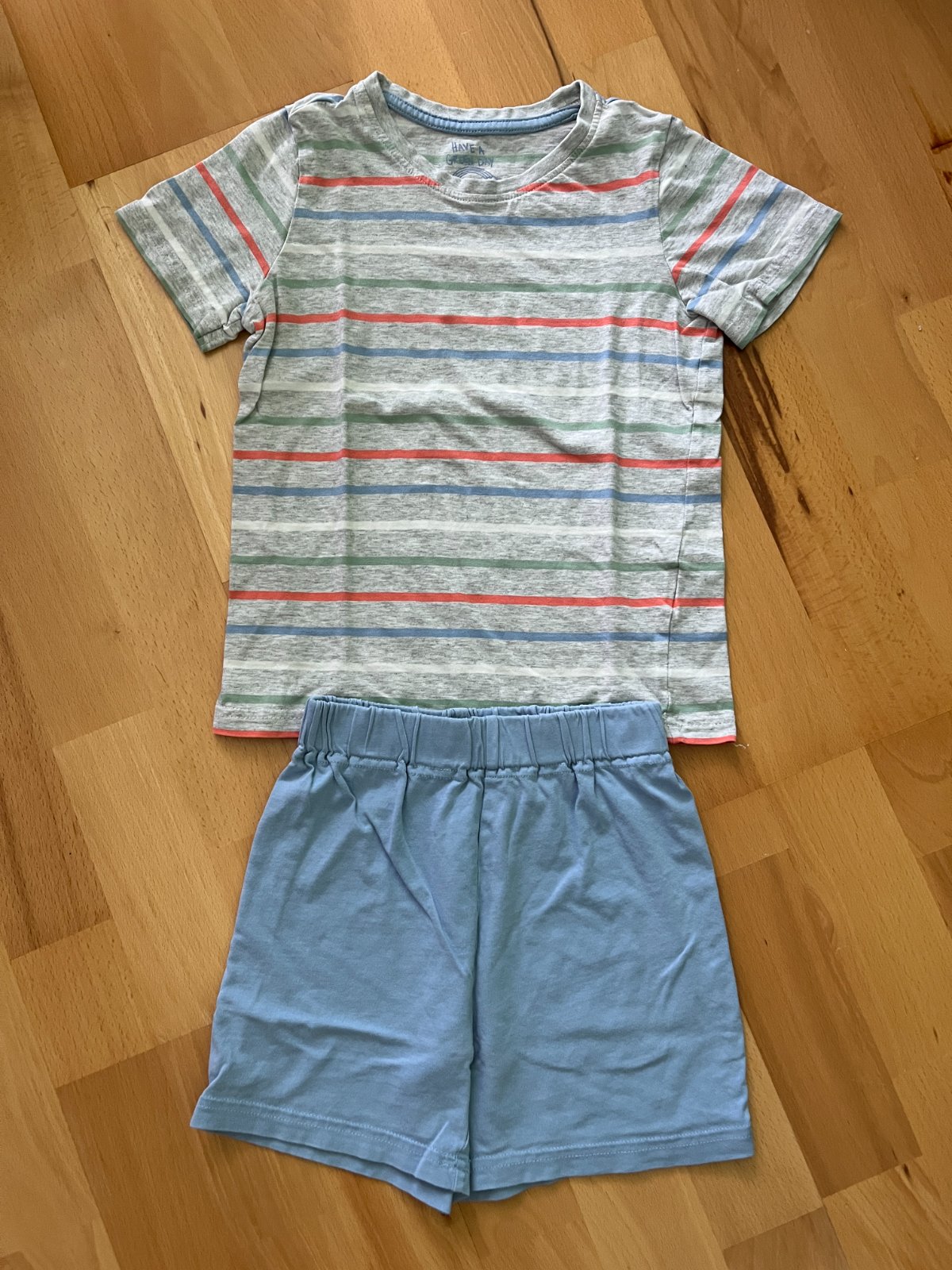 Krátke pyžamká z Tchiba, velkost 110-116. Nosené počas leta (spolu s ďalšími dvoma).