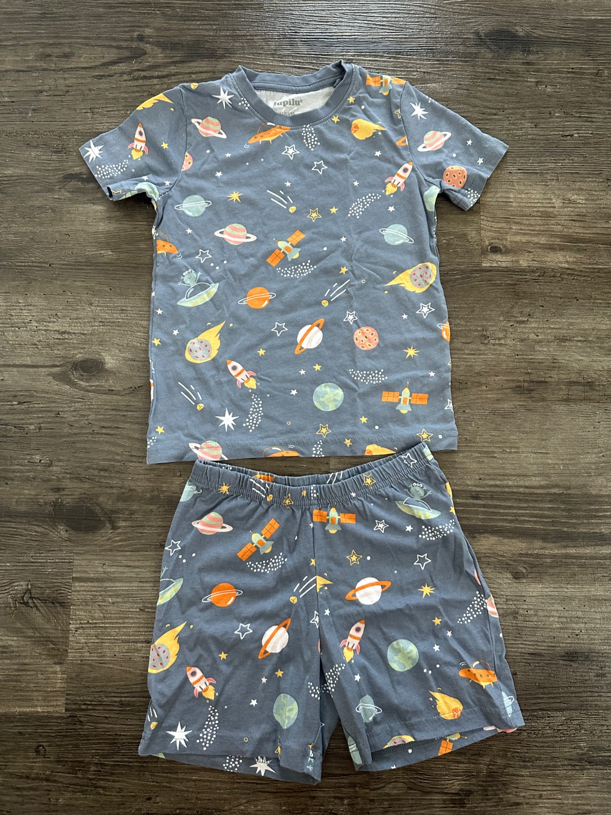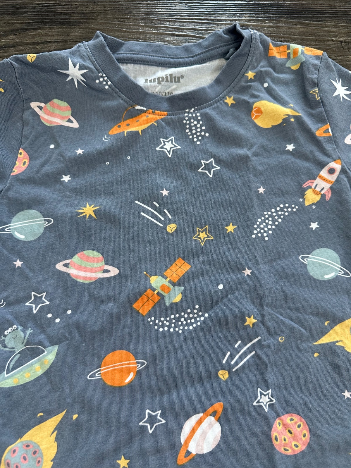 Letné pyžamko, mali sme ich viac, spodok nohavíc tematicky nepasuje, ale je tiež Lupilu v.110/116. Výborný nosený stav bez poškodení