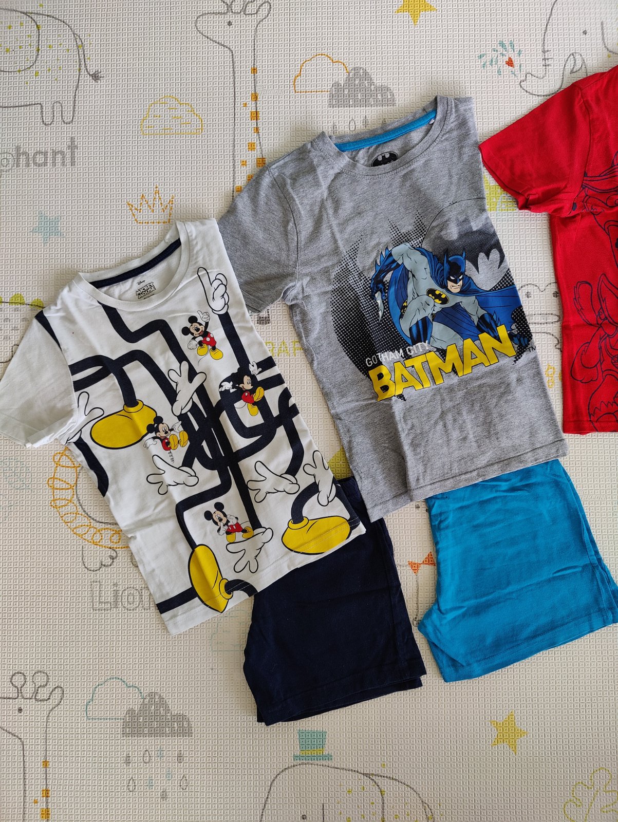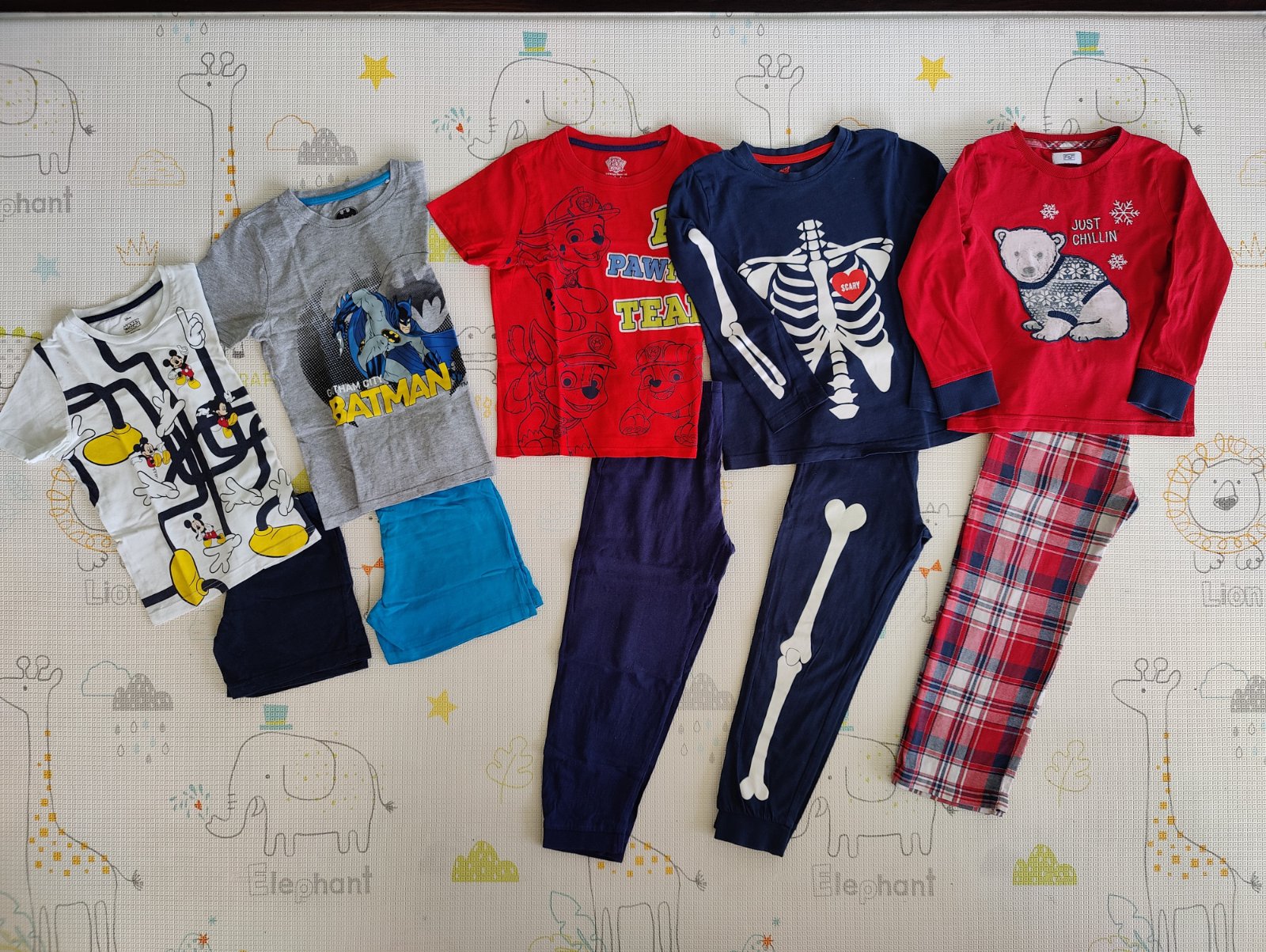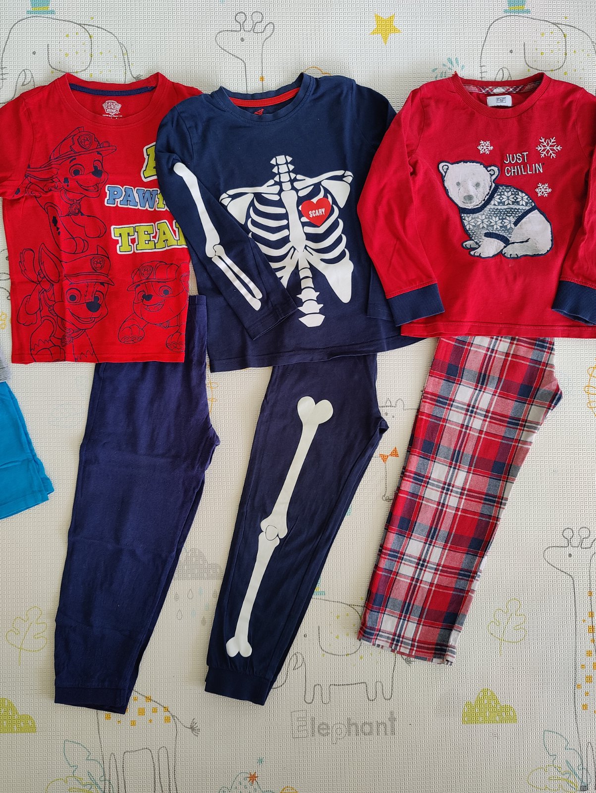 Predám sadu 5 pyžamiek pre chlapca vo veku 4-6 rokov. Značky Lupilu, F&F a Nickledeon. Dve pyžamá sú dlhé nohavice + dlhý rukáv, dve krátke nohavice + krátky rukáv a jedno dlhé nohavice + krátky rukáv. Všetky sú nosené, majú mierne nedokonalosti, ale ešte isto poslúžia. Cena spolu.