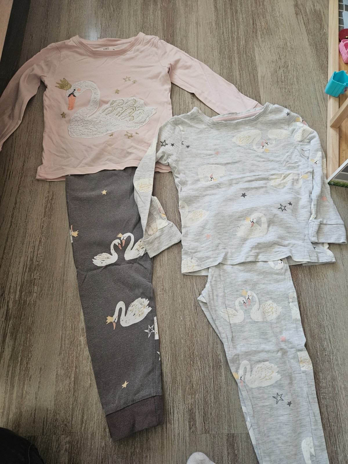3x Pyzamka, 2x nočná košieľka 2 pyzamka sú f&f ostatné iné značky Veľkostne sedia na 110/116 Jedna košieľka je 104 ale nosili sme spoločne s týmito pyzamkami Jedno pyžamo má fliacik, ostatné bez ...