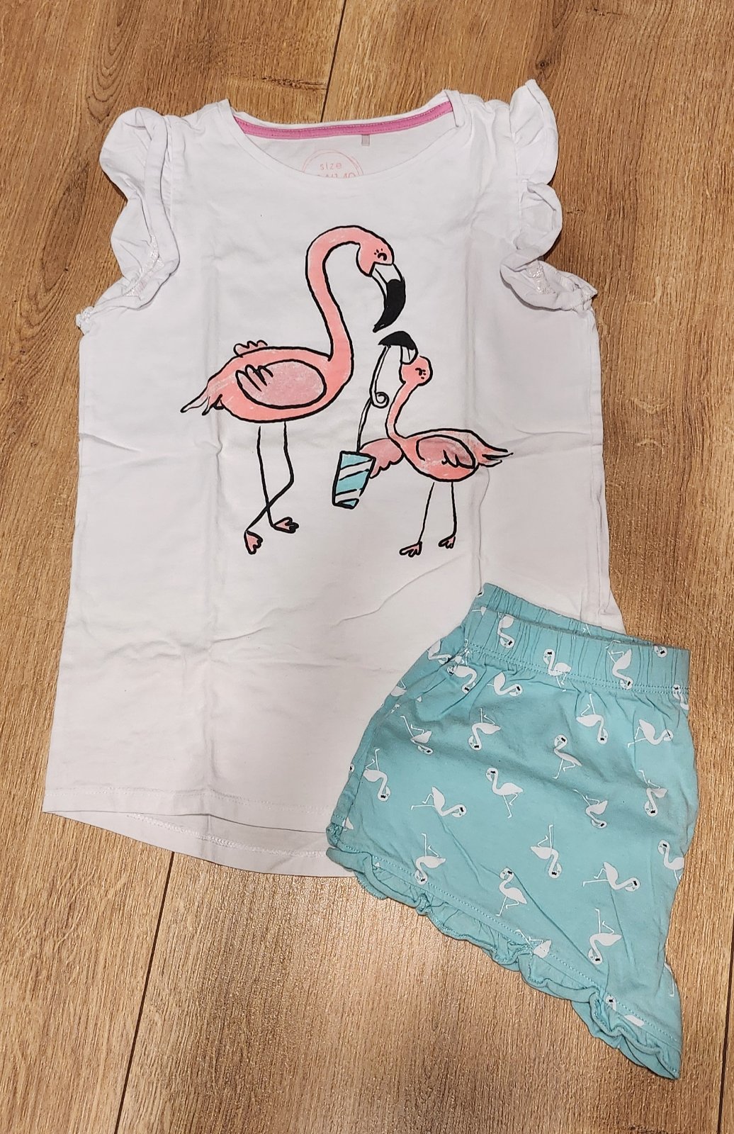 Dievčenské pyžamá. 2ks krátke letné Reserved, 1ks nočná košeľa Reserved a 1ks dlhé pyžamo H&M. Nočná košeľa a modré tričko majú pár fliačikov.