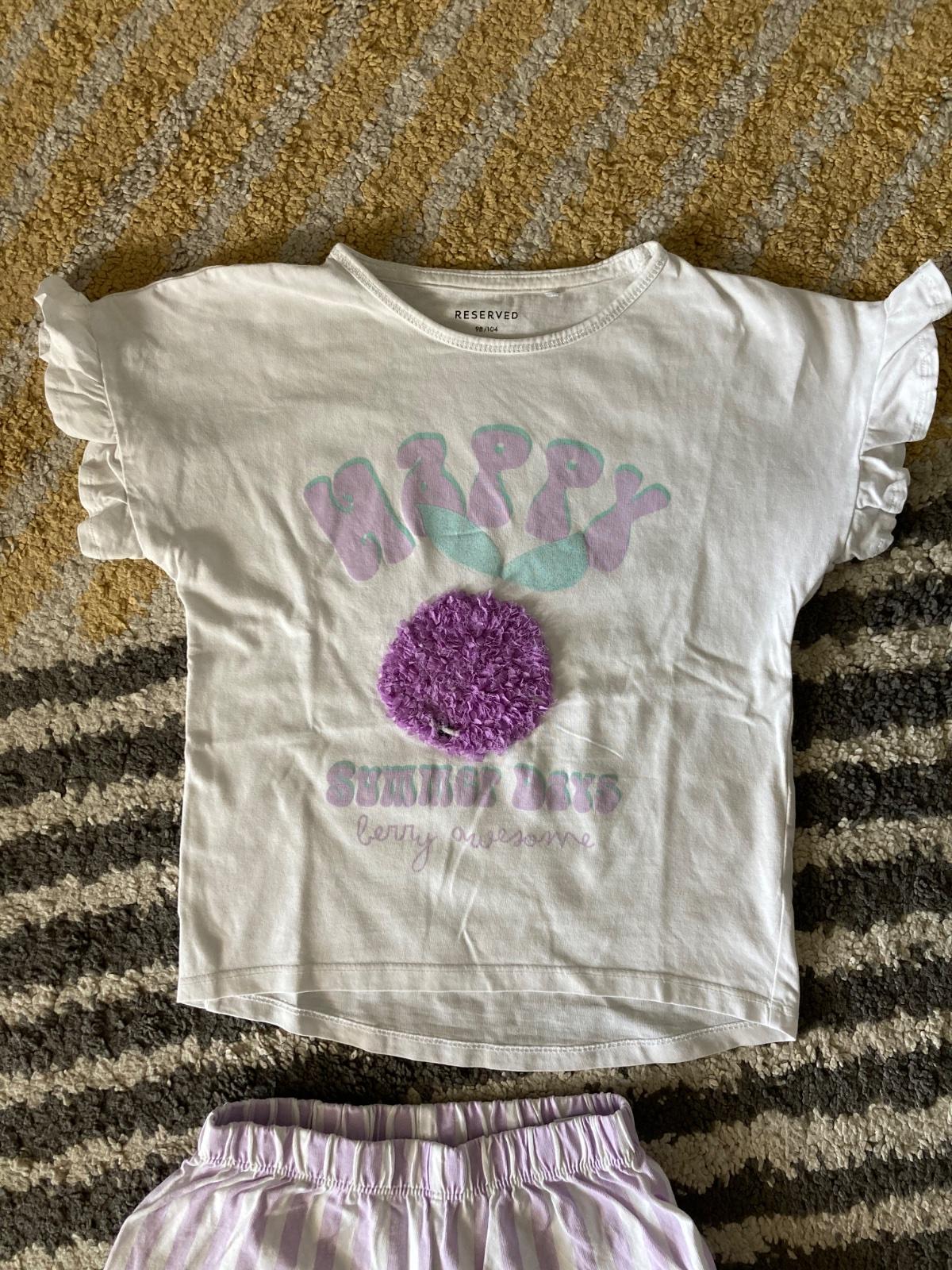 📌dĺžka tričko 39cm, vzadu 42cm, šírka od pazuchami 33cm, spodok bočná dĺžka 18m, pás na gumu 22cm, dvojveľkosť 98/104