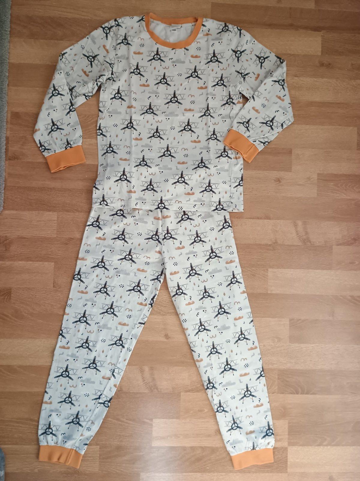 Predám nepoškodené chlapčenské pyžamko z mäkučkej bavlny značky Slovenka vo veľkosti 140. Celková dĺžka vrchného dielu je 50,5cm, šírka pod pazuchami je 36cm, dĺžka rukáva od ramena 42,5cm. Dĺžka n...