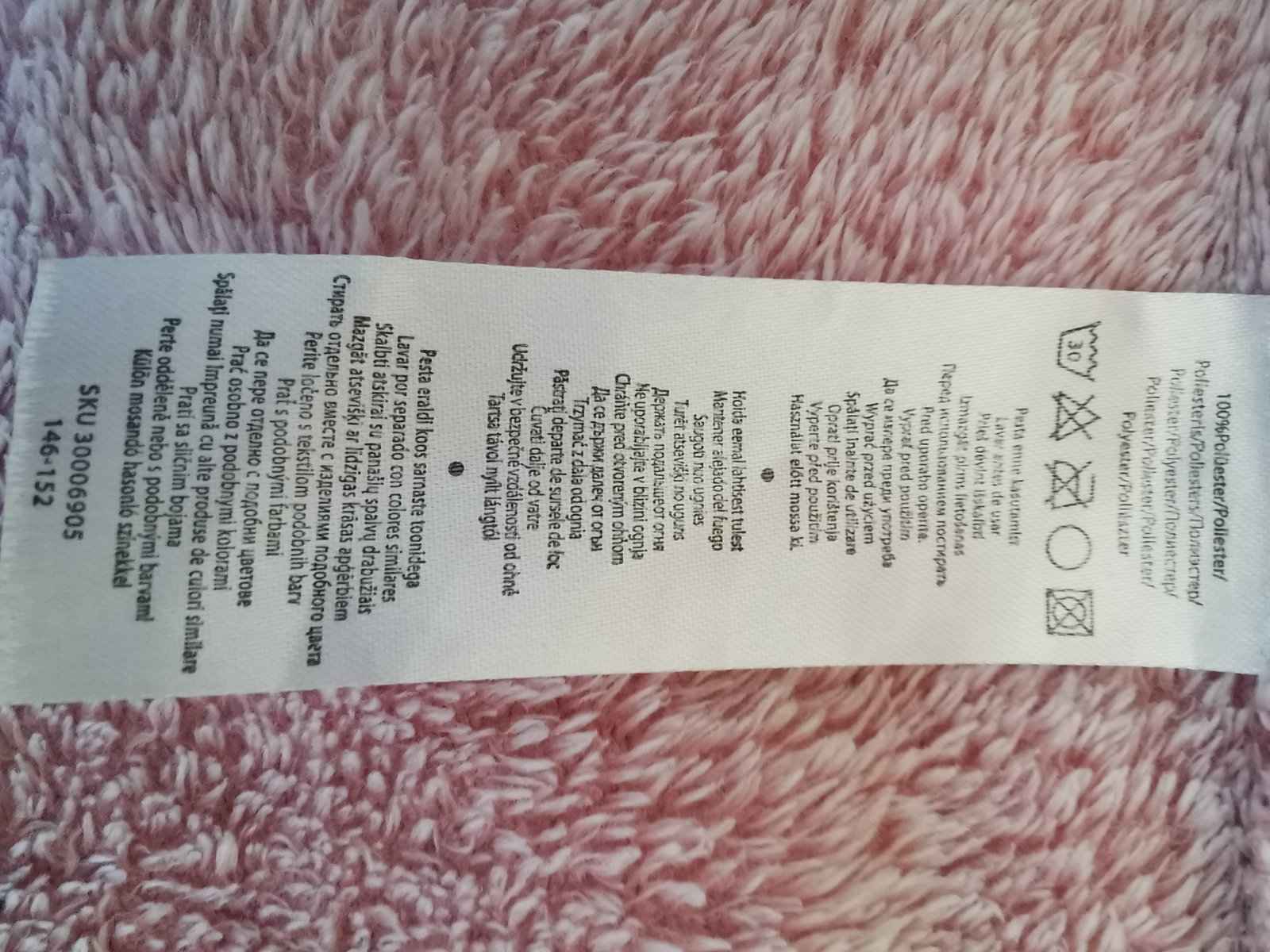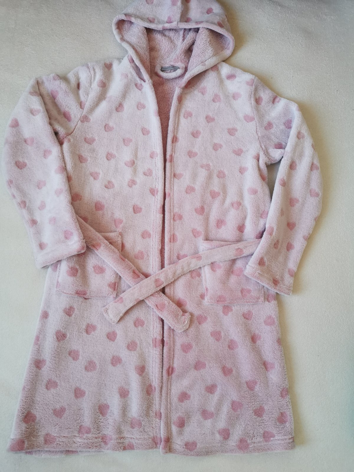 Predám župan na cca 8 rokov, nosený, bez poškodenia. Celková dĺžka je 85 cm, šírka pod pazuchami je 49 cm, dĺžka rukáva od ramena je 56 cm. Cena 4 € + poštovné
