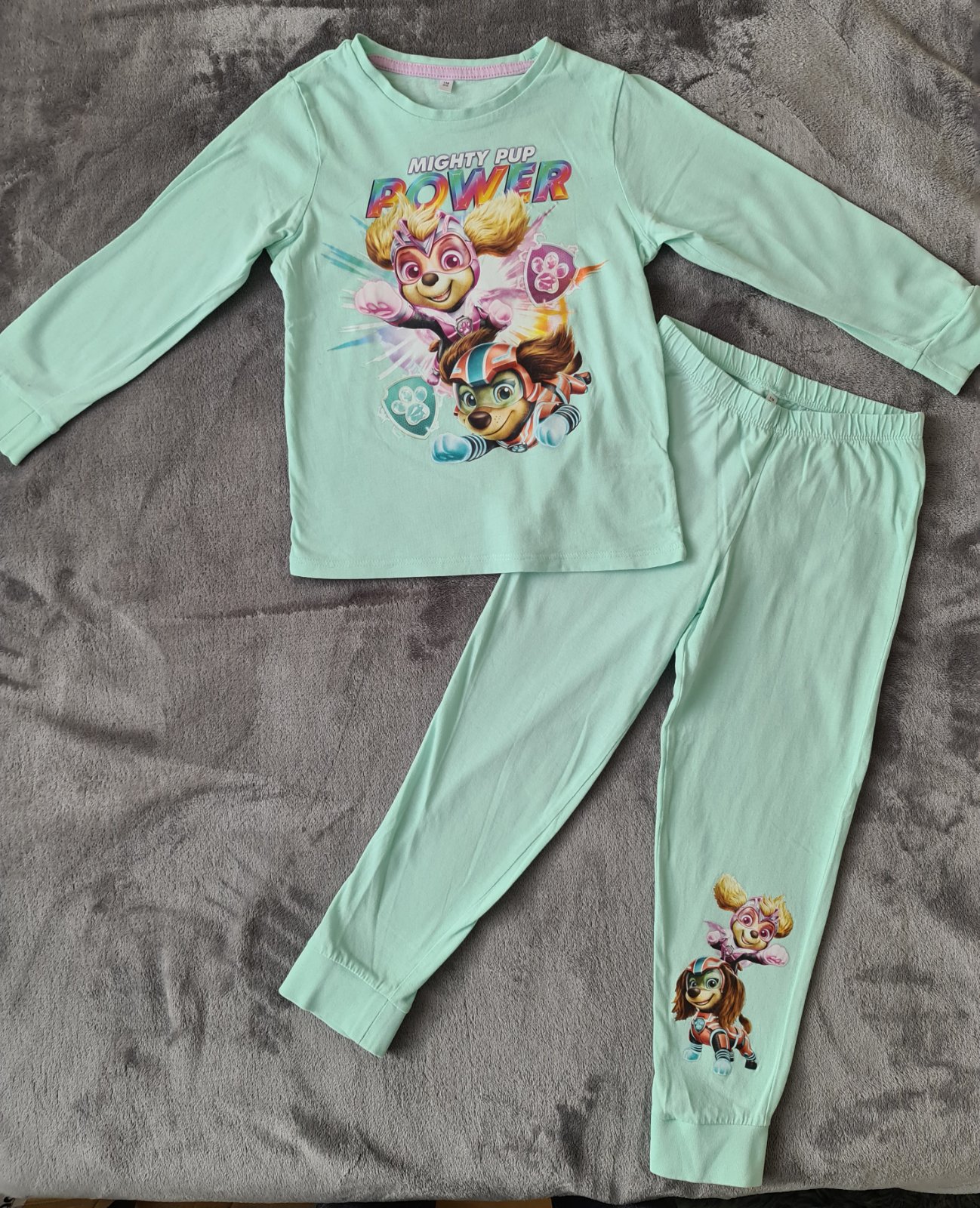 Pyzamko v peknom nosenom stave. Velkost je 116, ale je skor 110/116. Obrazky neposkodenei, ziadne flaky ani dierky