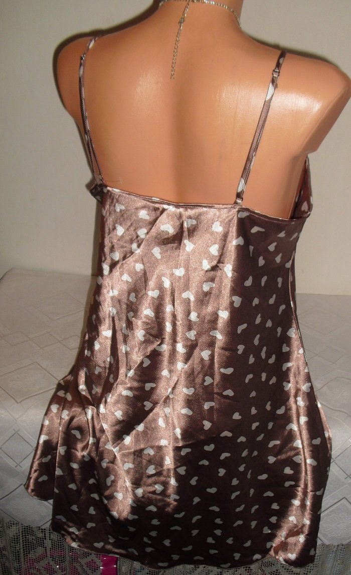 predam nadhernu satenovu kosielku,m nadhernom vybornom stave, zdobena srdieckami, velkost uvedena l. sirka pod poprsim 45 cm x 2, dlzka cca 84 cm, ramienka ma posuvatelne.