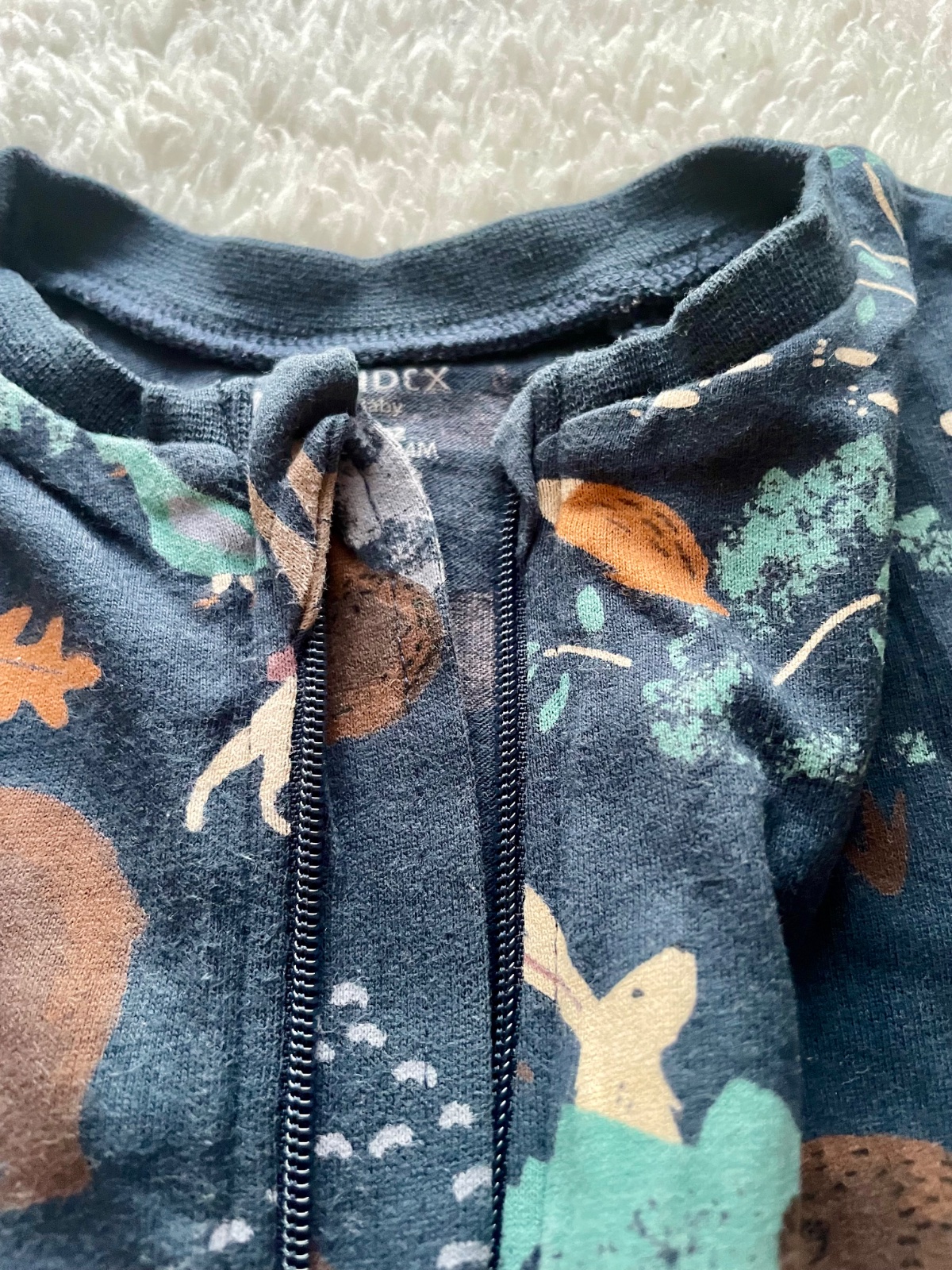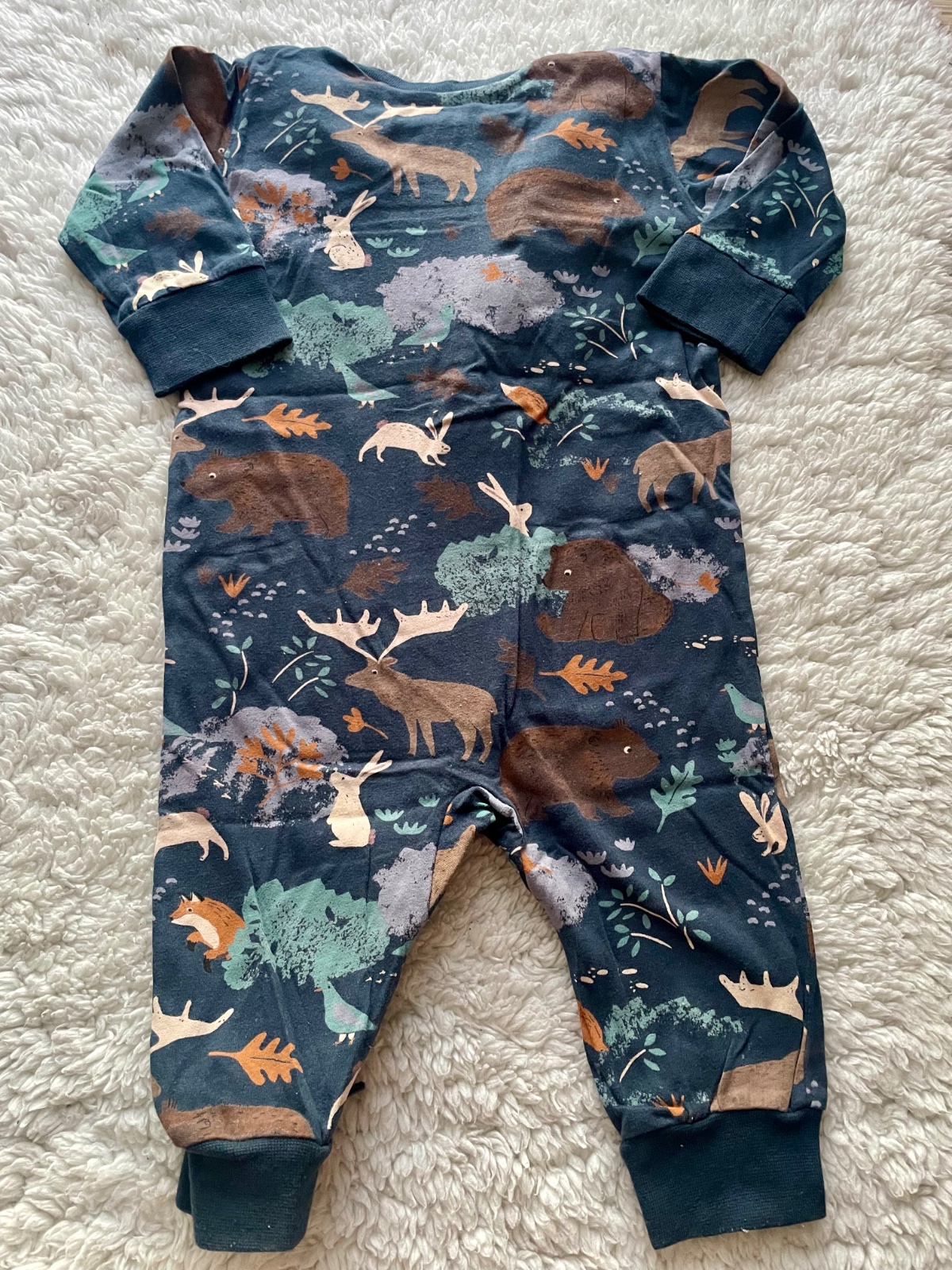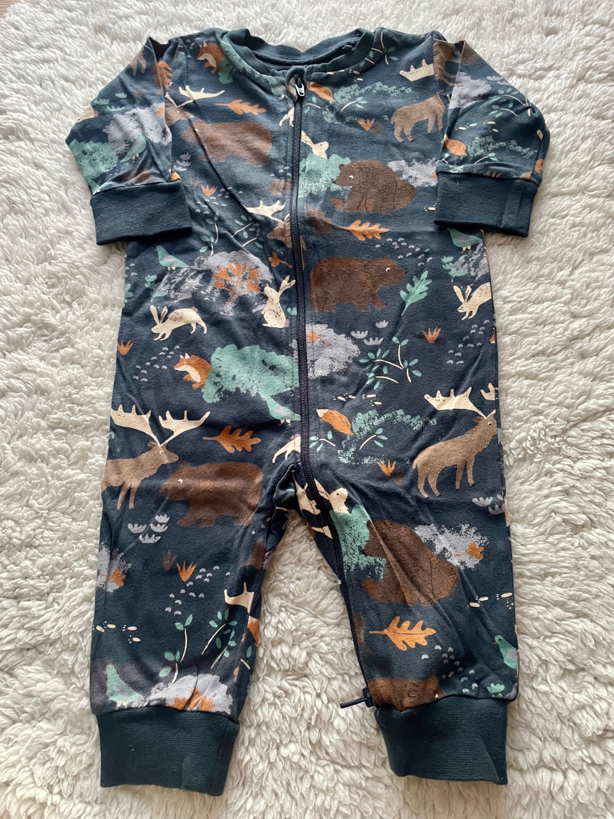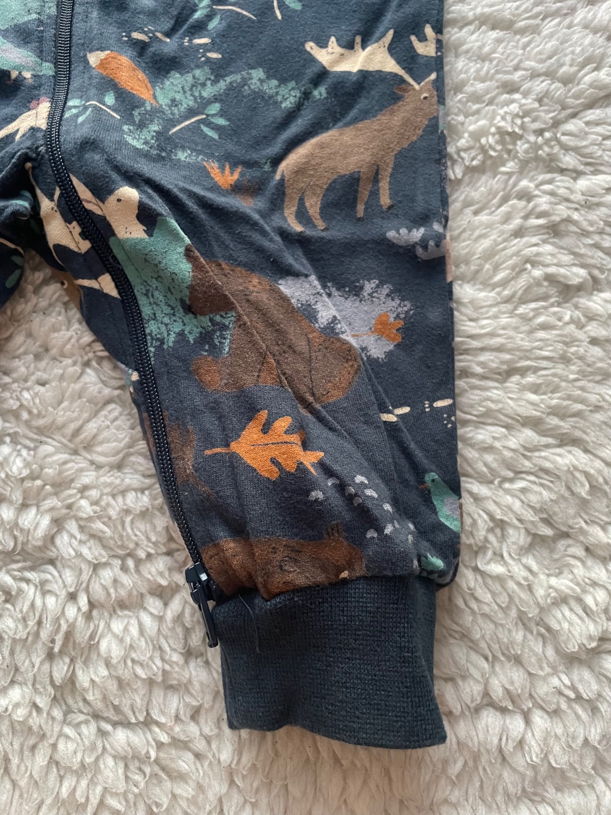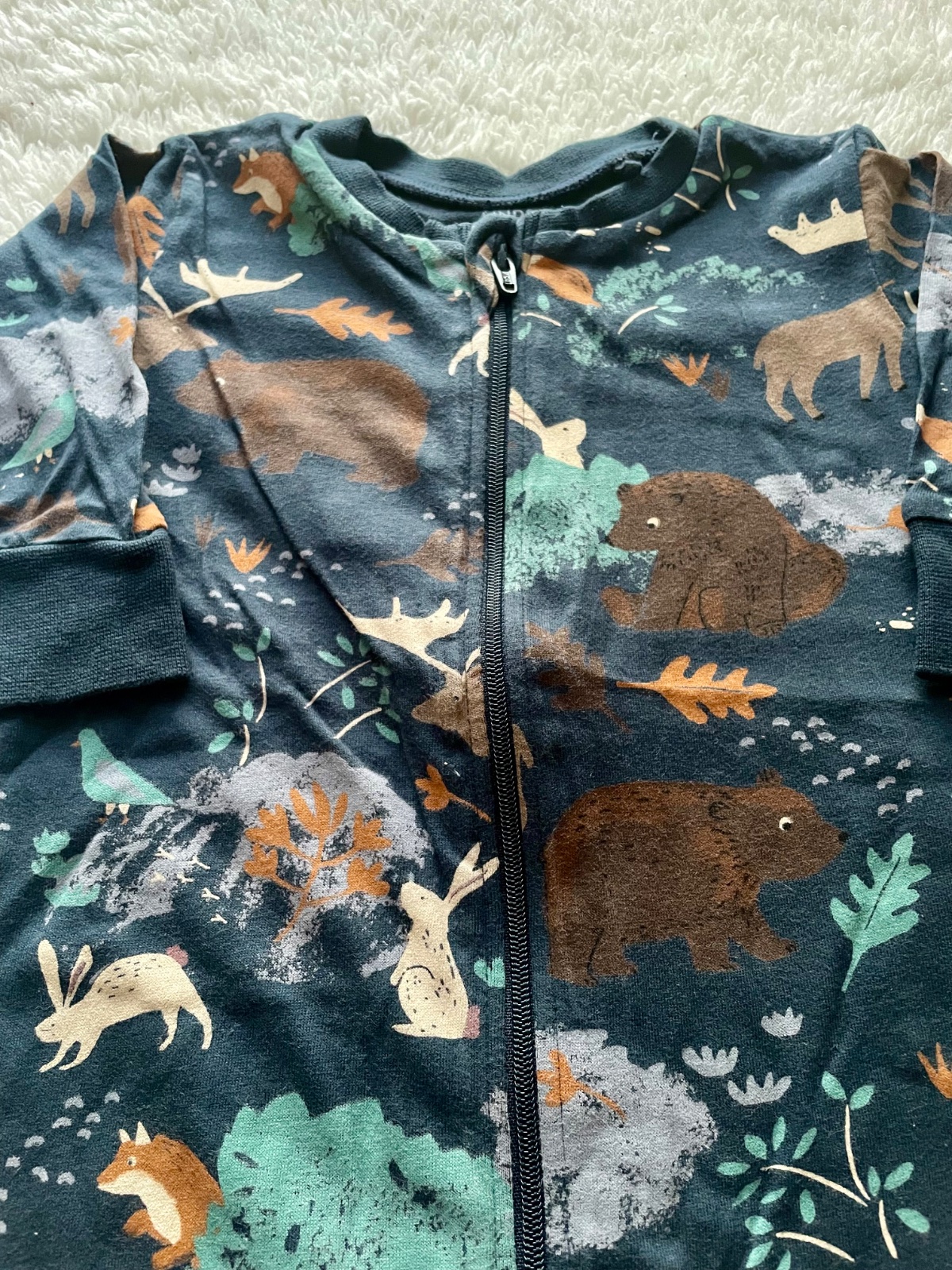 Tmavomodre bavlnene pyzamo s motivom lesne zvieratka. Ako nove, bez poskodeni a pracieho chlpu. Obojstranny funkcny zips, farba krajsia nazivo. Velkost 62