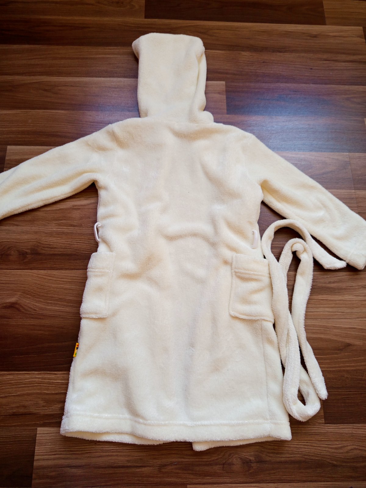 Mäkký a pohodlný župan s kapucňou, má aj vrecká. Mám k dispozícii 2 ks v rovnakej velkosti. Bežné opotrebenie.