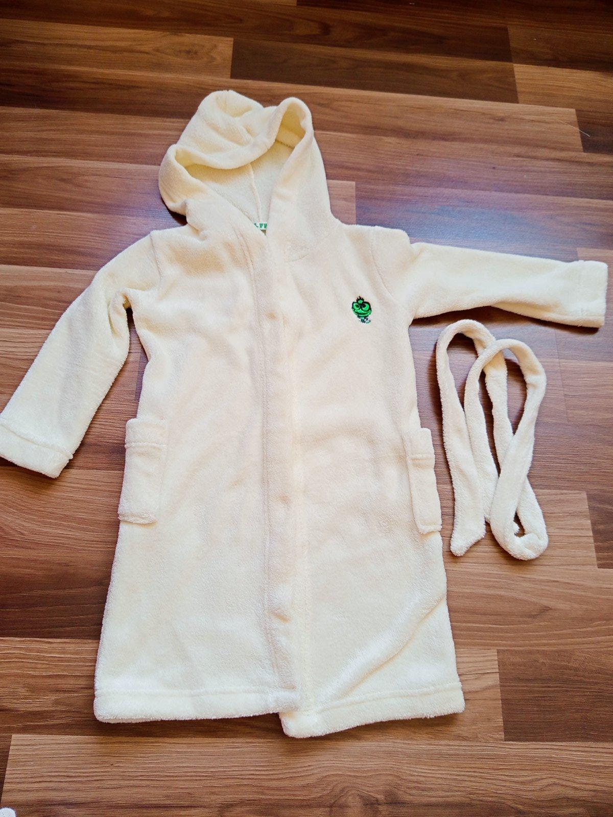 Predám pekný dievčenský župan so žabkou. Veľkosť 112-116. Cena 5 € + poštovné.