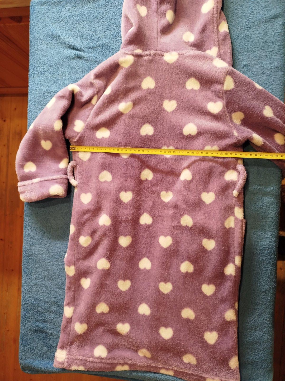 Ponúkam na predaj dievčenský župan na 4-5r č. 110. Celková dĺžka 66cm. Šírka pod pazuškami : 36cm. Celková dĺžka rukáva od krku: 45cm, od pleca: 35cm, od pazušky : 26, 5cm. Vľavo vpredu bola apliká...