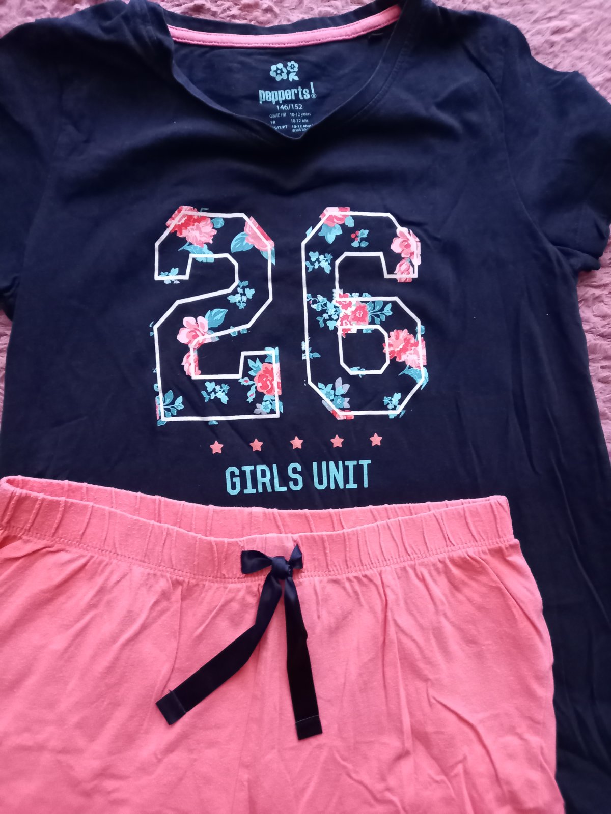 dvojdielne dievčenské pyžamko veľ. 146/152, zn. Pepperts. Na cca 10/12 rokov je ako nové, pár krát oblečené. Mám k nemu aj originál krabičku vrch je biely, nohavice tmavomodré