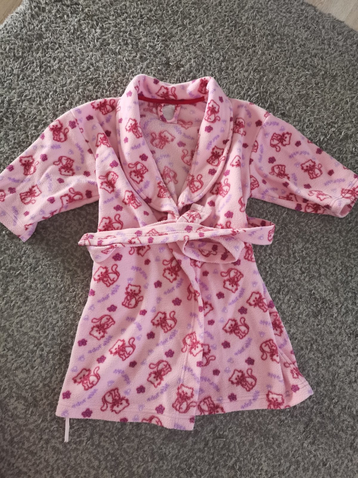 Župan v super stave bez poškodenia. Veľkosť je 122/128. Dĺžka 70cm,sirka pod pazuchami 44cm a rukav od pleca 40cm Cena bez pošty