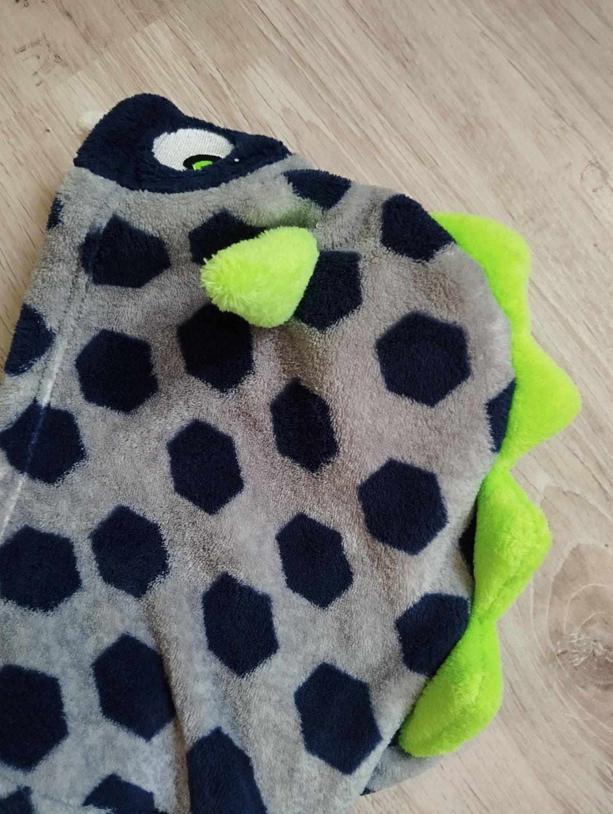 mäkkučký župan sivej farby s červenými doplnkami, s obrázkom z rozprávky Ako vycvičiť draka. S praktickou kapucňou a vreckami. Dĺžka: 70 cm rukáv + rameno: 54 cm