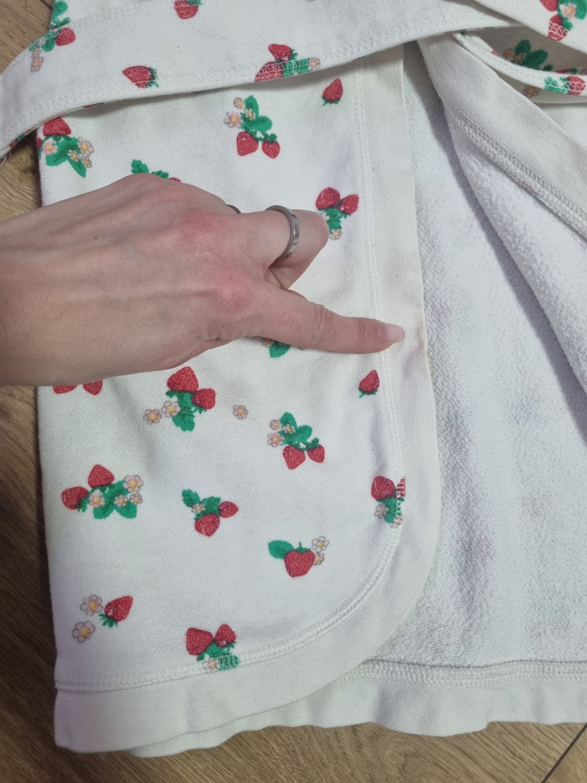 Pekný stav, nosený, obľúbený, skvelo vsiakne vodu. Jeden malý fliačik viď foto. Velkost 110/116