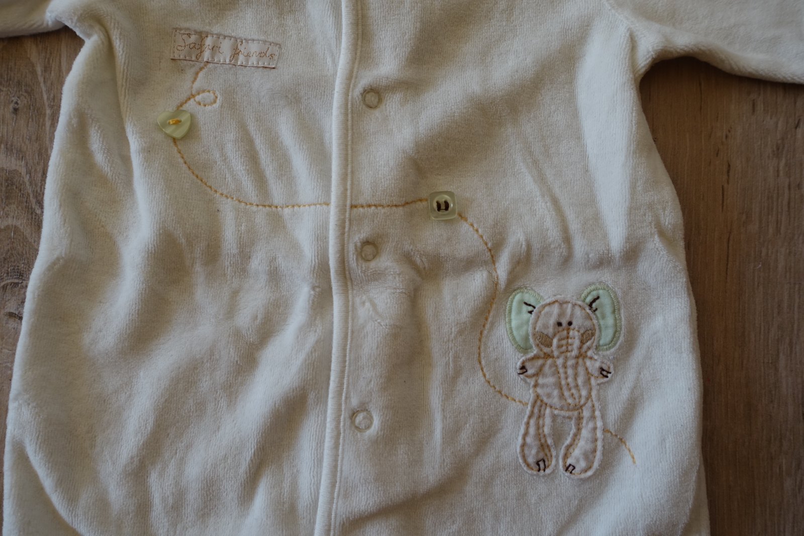 Predám krásny teplý velúrový overalík so sloníkom. Bol nosený na striedačku aj s inými, ale je v krásnom stave. Sloní, je z vnútra podšitý - neožiera. Dĺžka od pliecka po pätu je 49 cm a od pliecka po rozkrok je 39 cm.