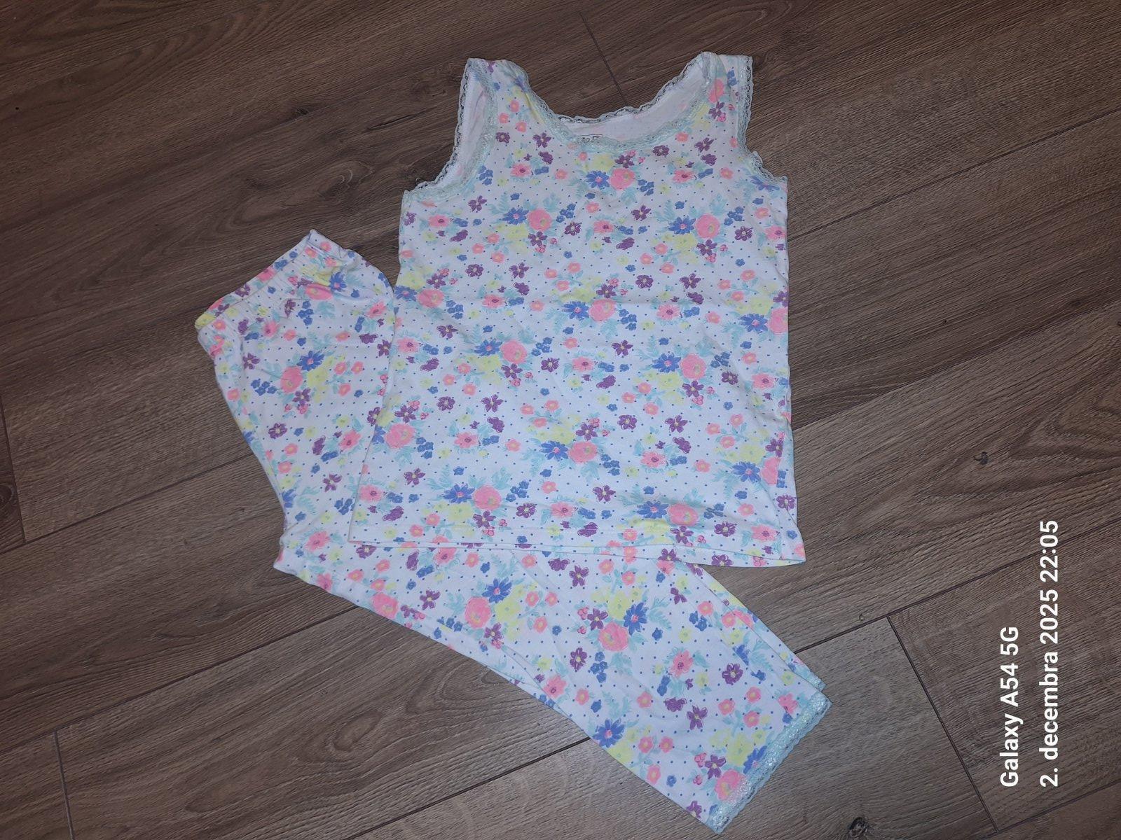 Veselé kvietkovane pyzamko. Bez známok nosenia. Veľkosť 10/11 rokov