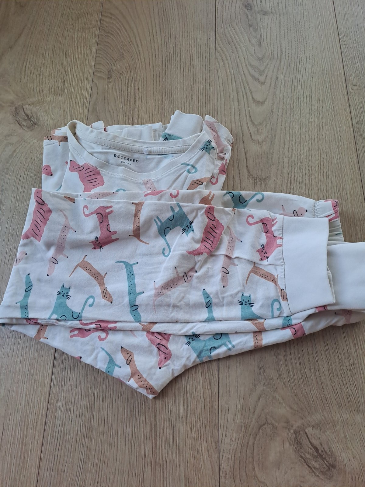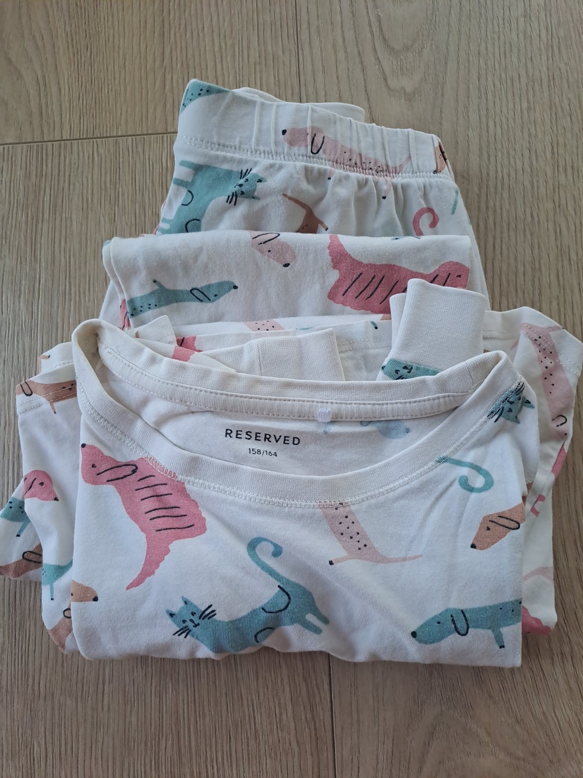 Reserved spodný diel 2 kusov pyžama, úplne nové, len odstrihnuté vysacky lebo to dcéra nemá rada , pichajú ju. Krémová farba z hviezdou oblohou, veľkosť 158/164, predávam len spolu