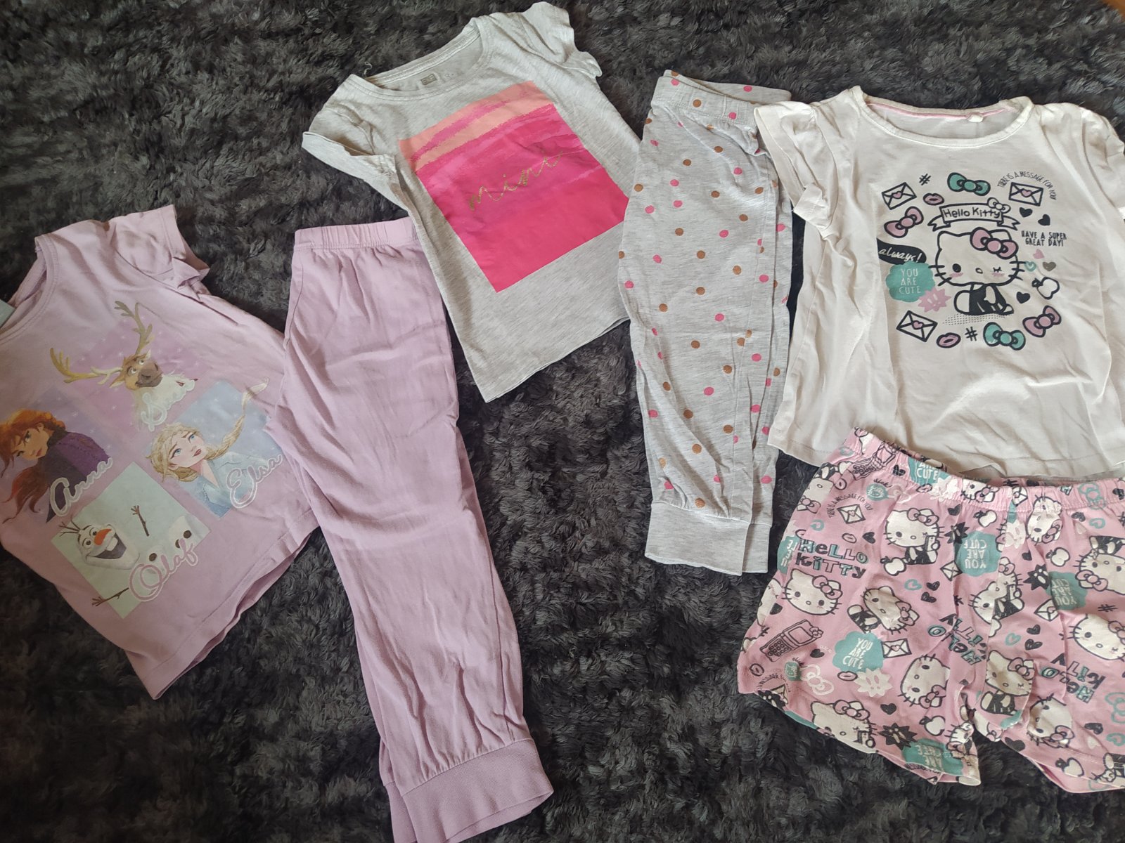 Rôzne pyžamka dlhe aj kratke na 3-4 roky ale ponosite aj dlhšie bežné znamky nosenia prania v pohode letne 2€ ks,trojdielne 4€,