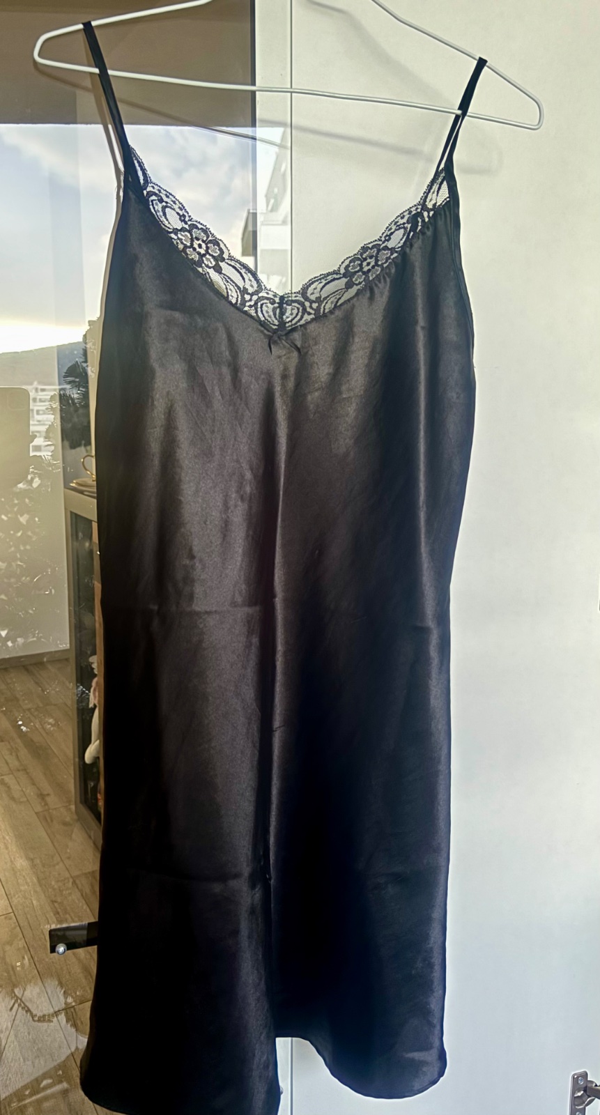 Nočná saténová košieľka s čipkou.