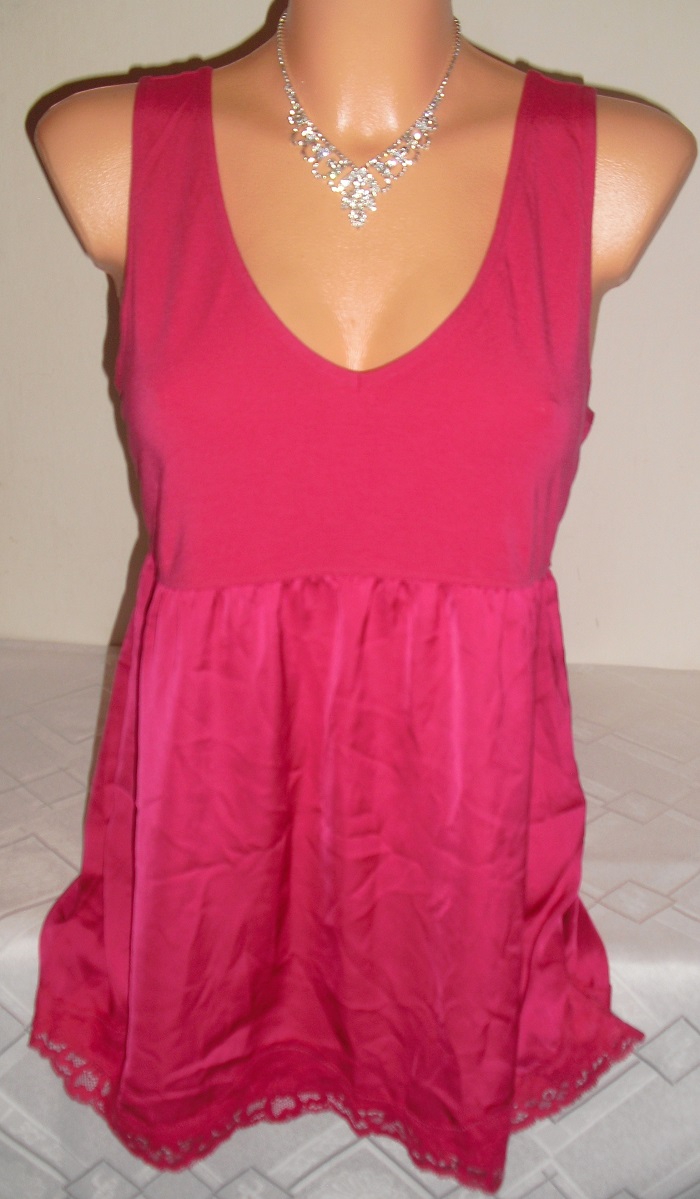 predam nadhernu ruzovo lososovu tmavu kosielku, je nadhernom vybornom stave, znackova, velkost uvedena l, elasticka so satenom. v zadu detailne zdobena. sirka 42 cm x 2, dlzka 70 cm.