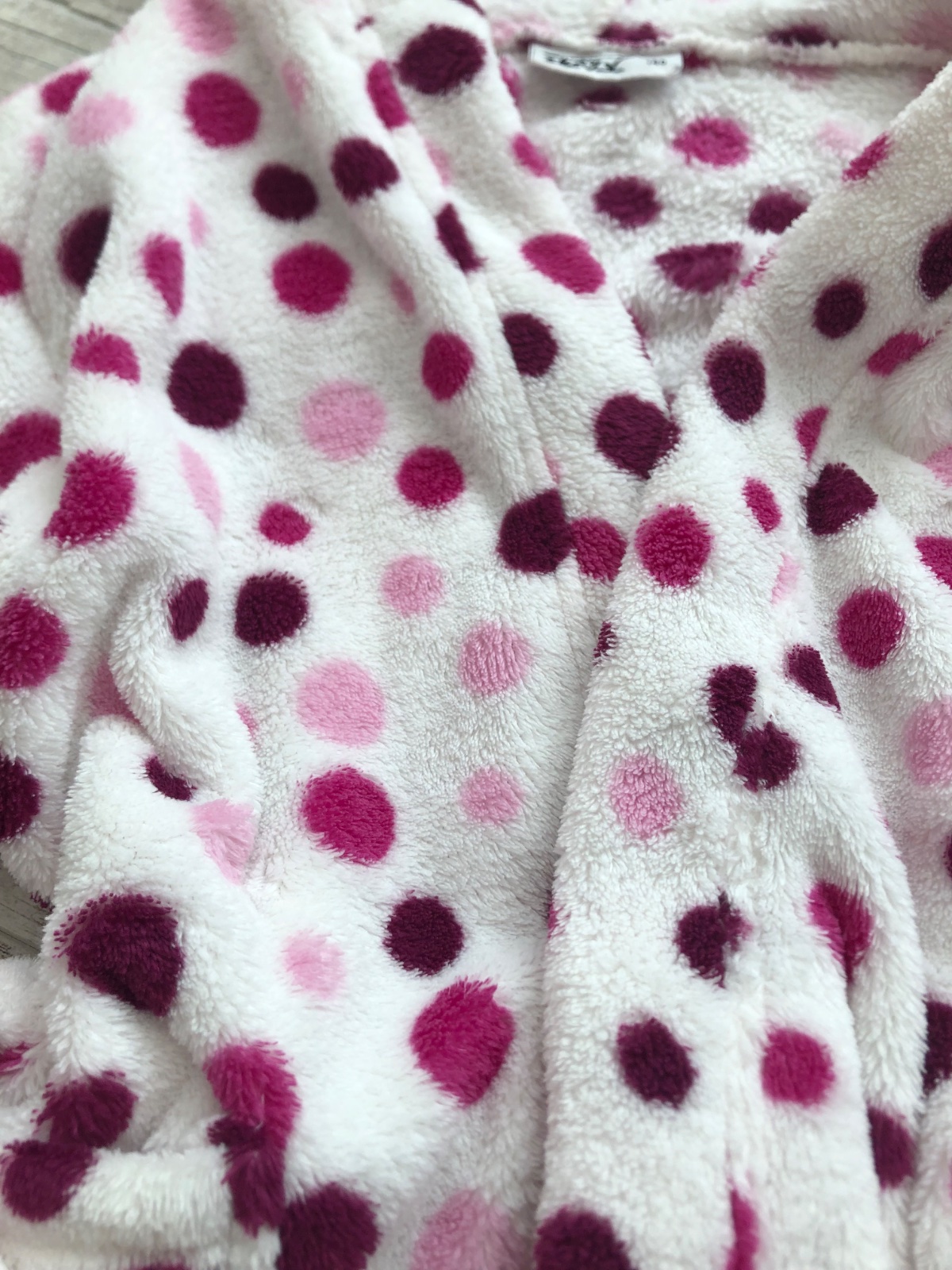 Predám krásny hebký župan vel.140 farba sýtejšia ako na foto, na pravom rukáve fliačik od farby na vlasy inak v poriadku + pošta