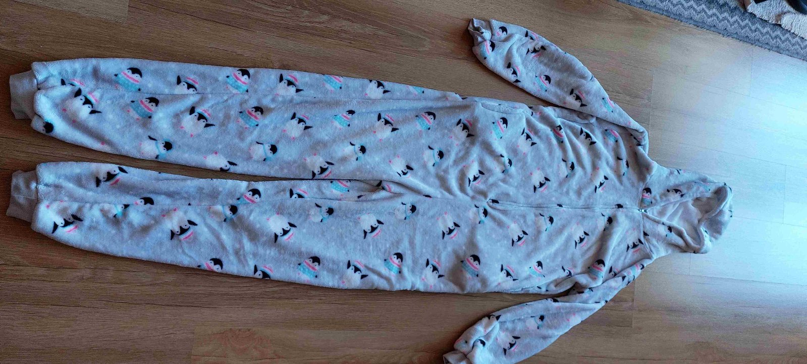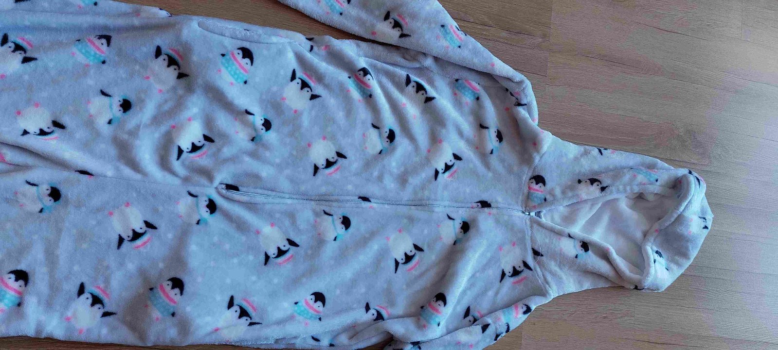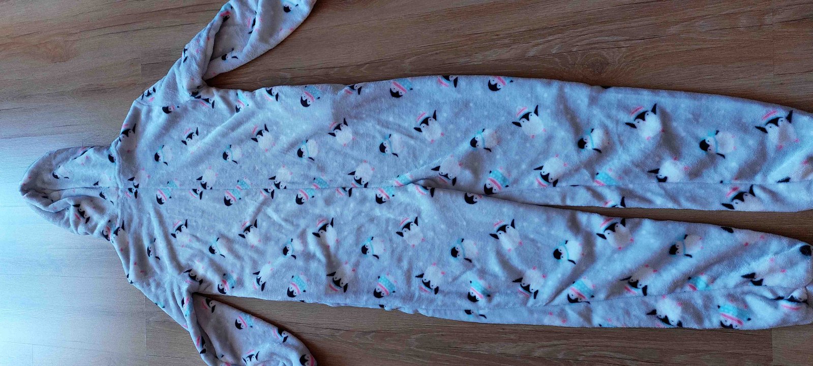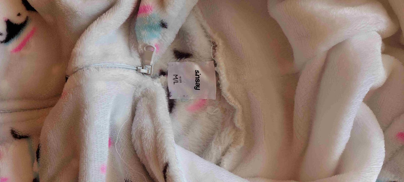 Čisto nový,nepoužitý overal na spanie, alebo na domáce nosenie. Chladivý materiál. Nevhodný darček kupovaný v Číne. Také isté mám aj pre dieťa.