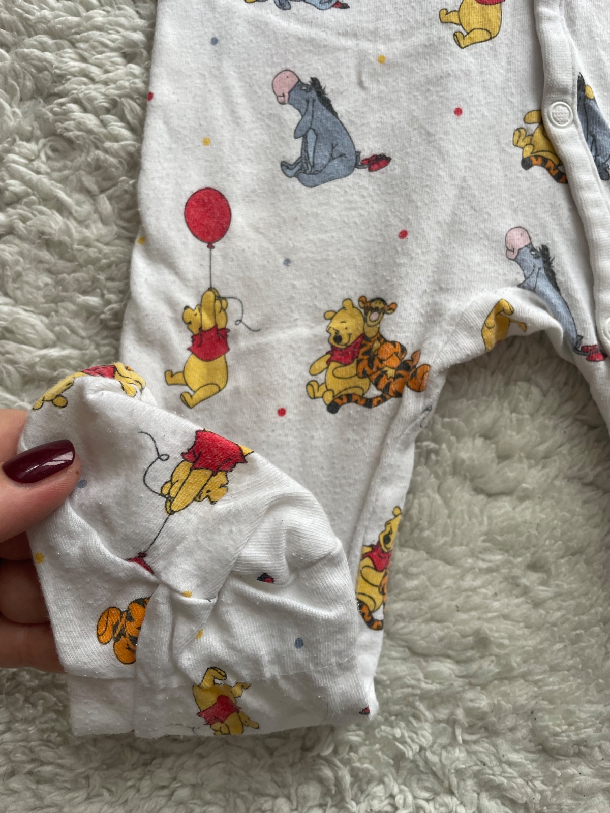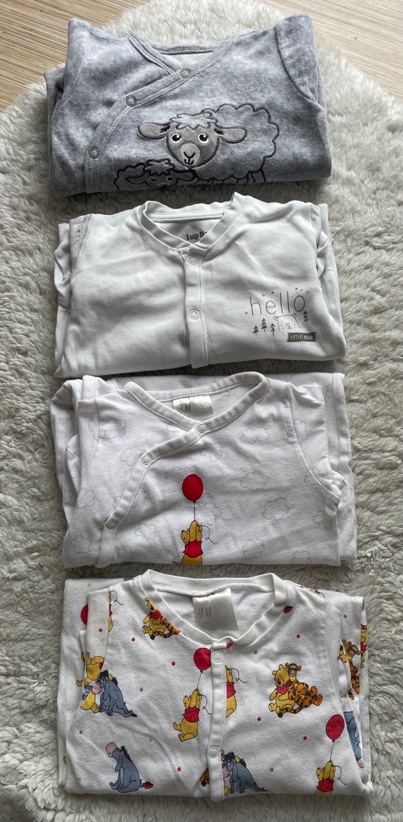 biele s oblacikmi a mackom Pu H&M zmolkove