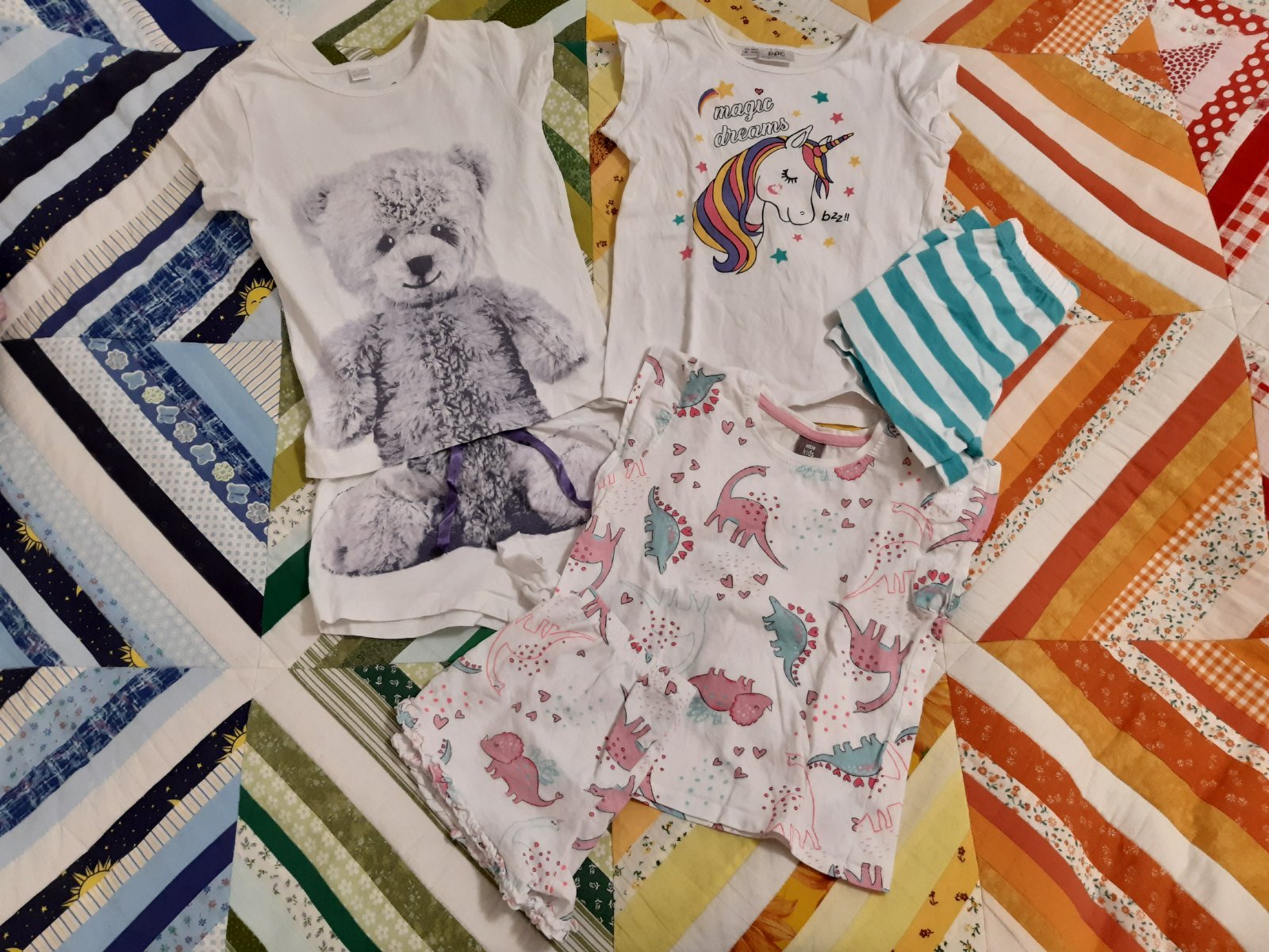 Bavlnene pyzama v peknom stave bez poskodeni. Velkost 104/110, dve su bonprix, jedno little kids. Cena za vsetky spolu.
