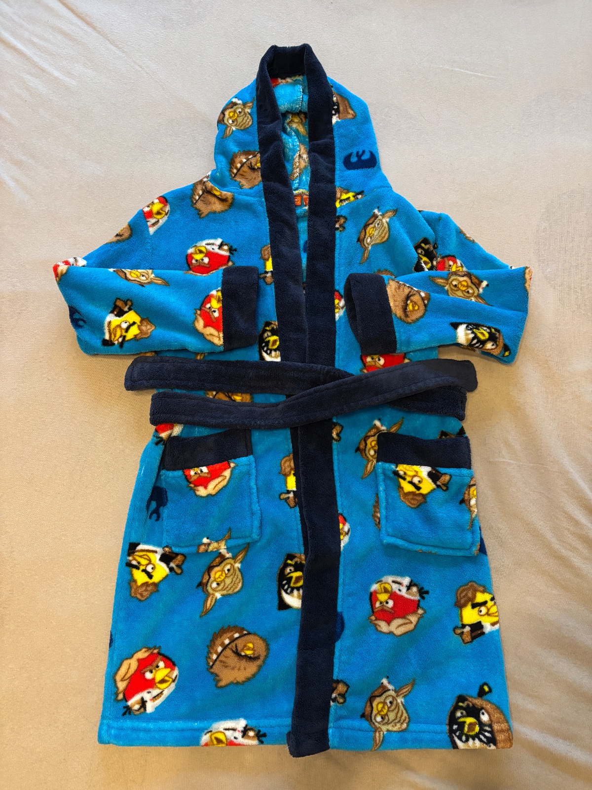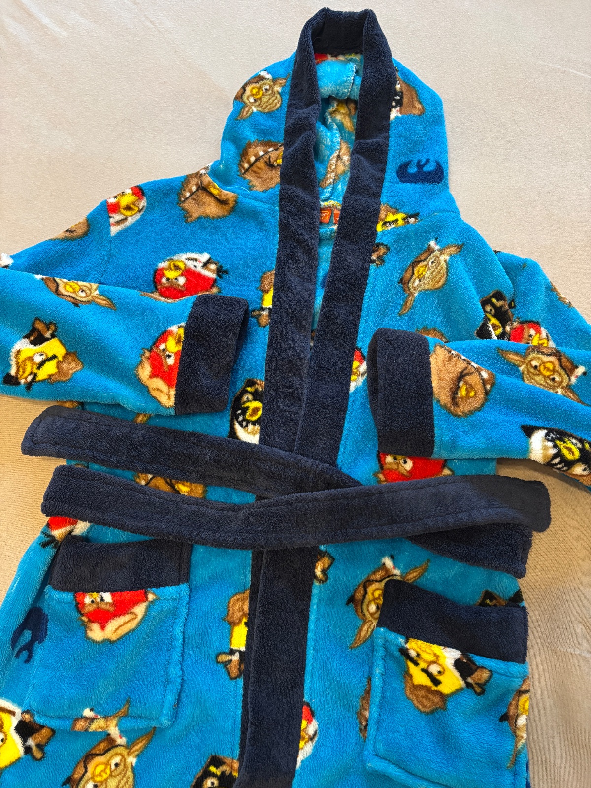 Predám župan s kapucňou, nepoškodený. Veľkosť pre 6 - 8 rokov, jeho celková dĺžka je 70 cm. Dĺžka rukáva je 38 cm, šírka je 39 cm. Župan má vpredu po oboch stranách funkčné vrecká a má aj opasok na...