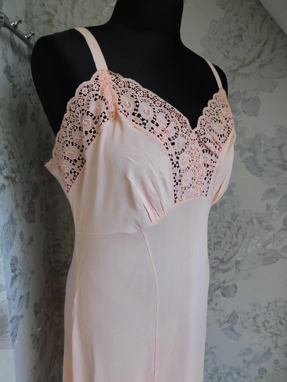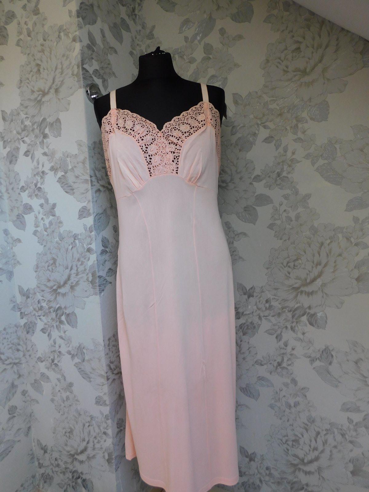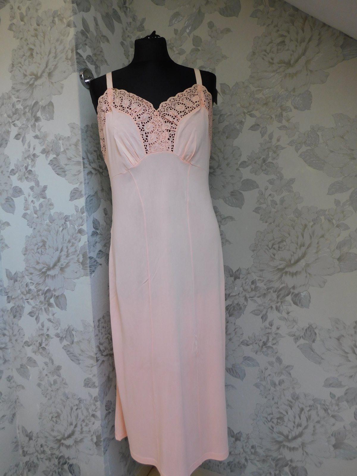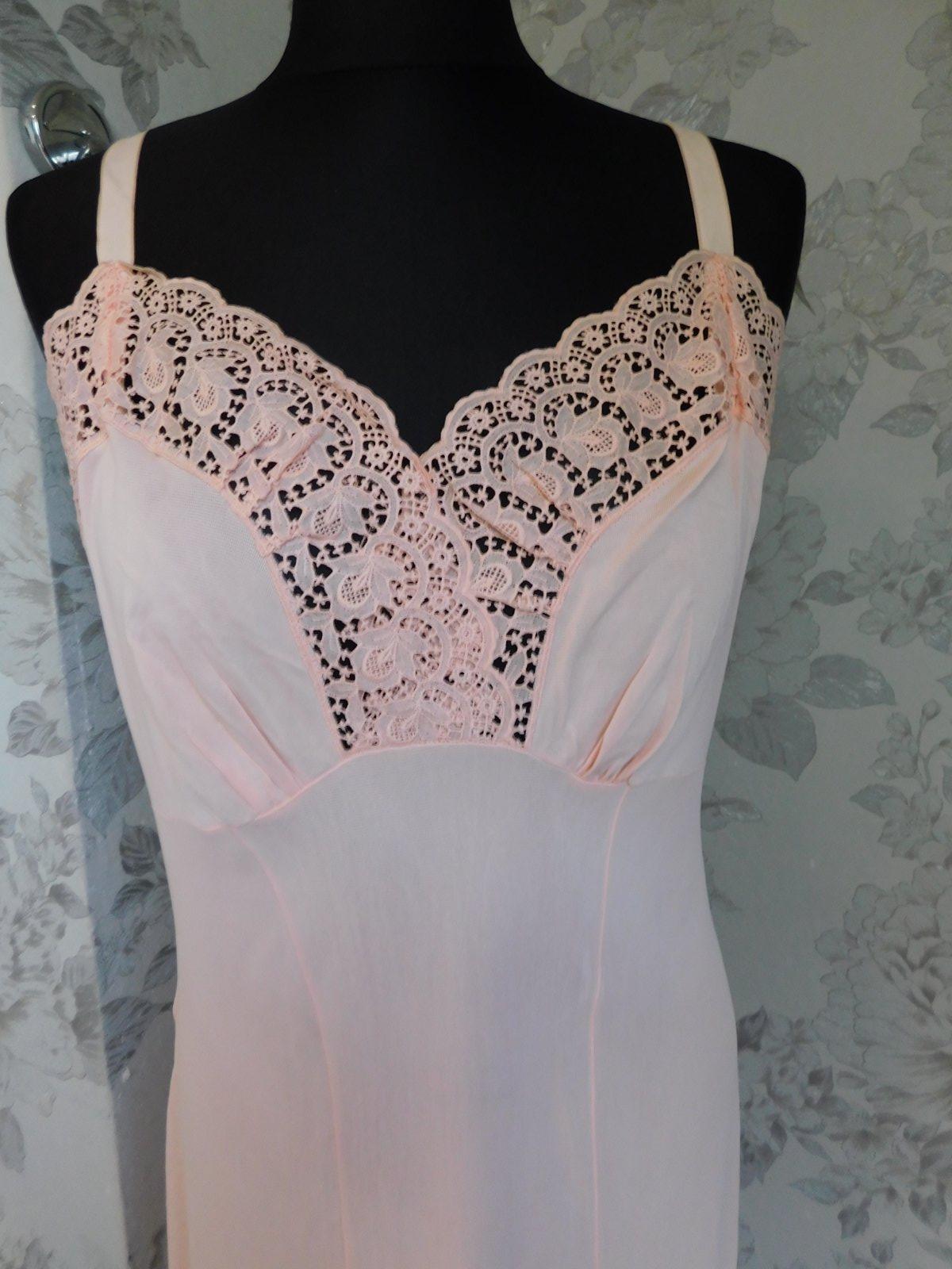 HELFFERICH Velmi pekna vintage nočna košela lososovej farby,lemovana luxunou čipkou. se36