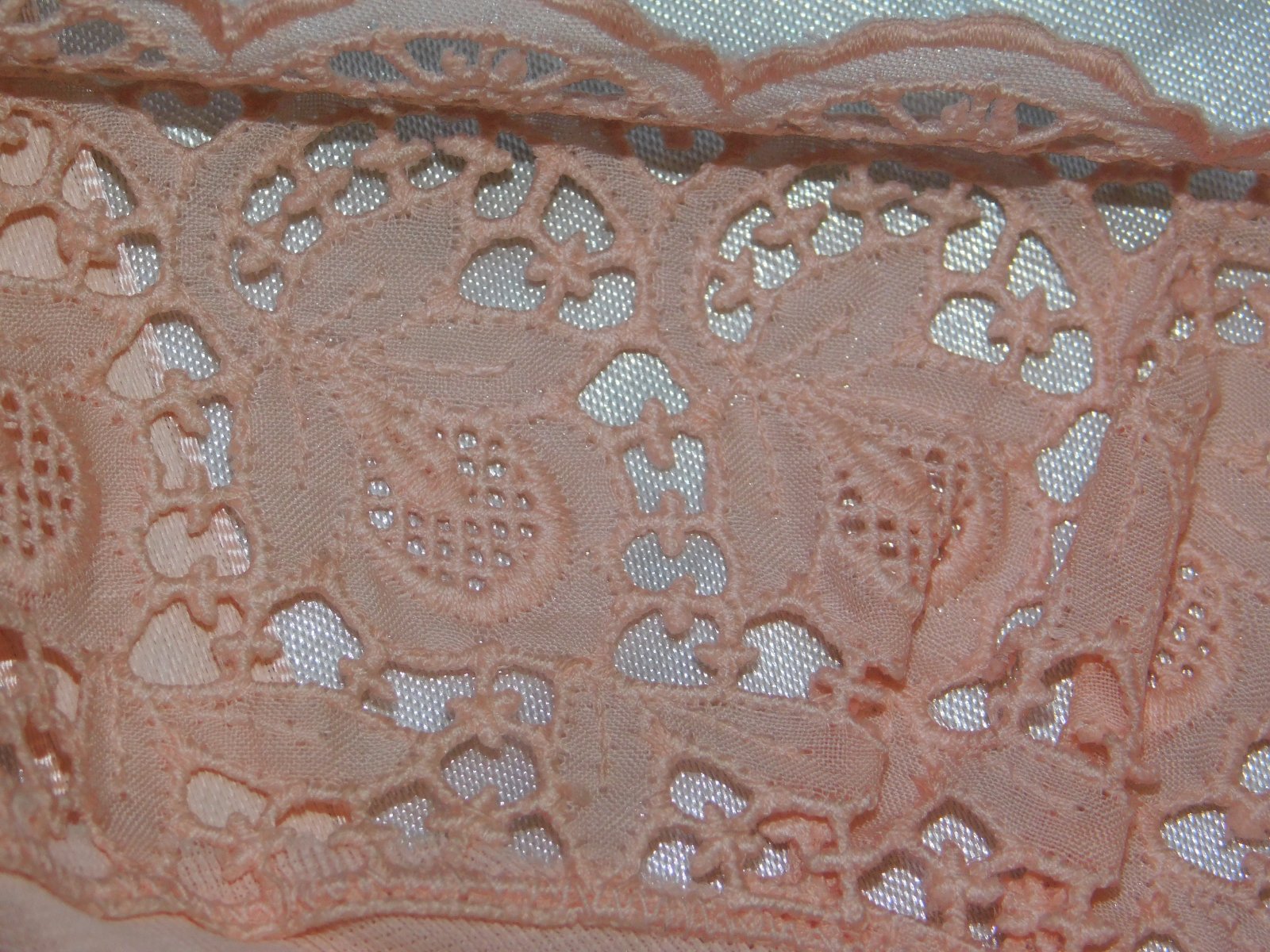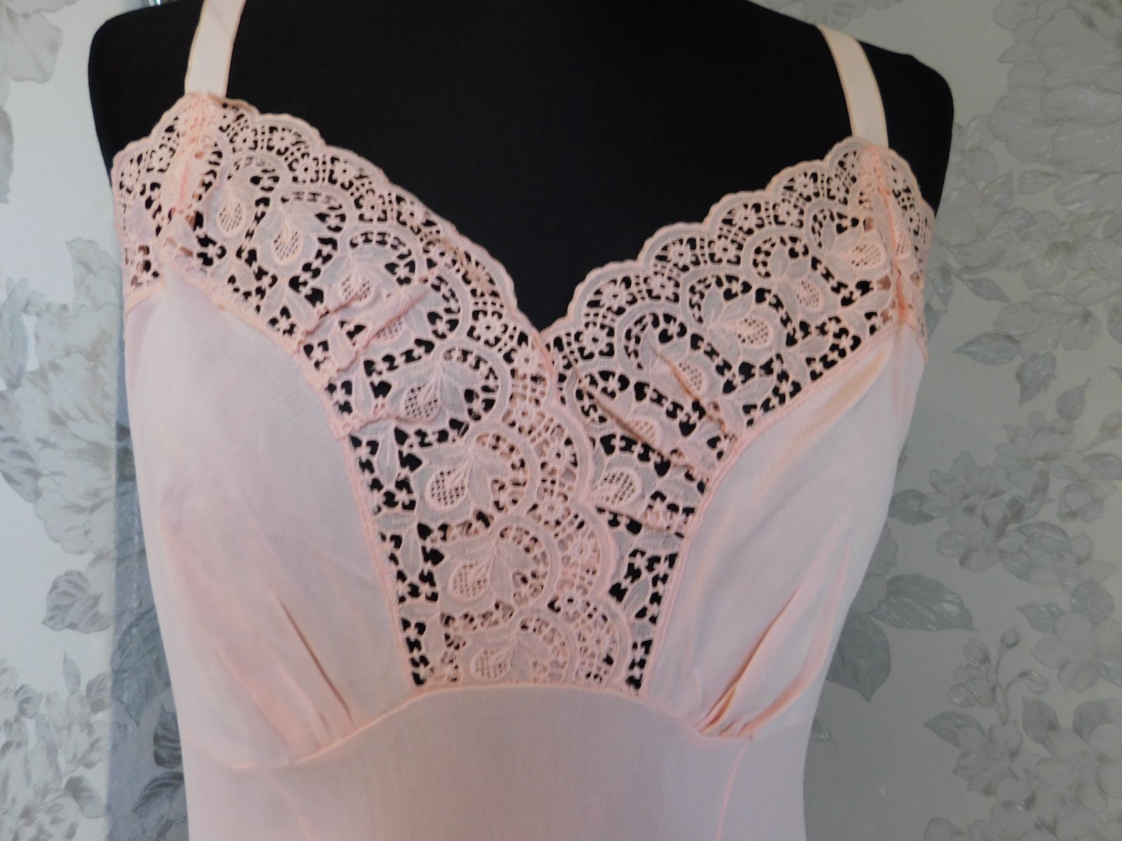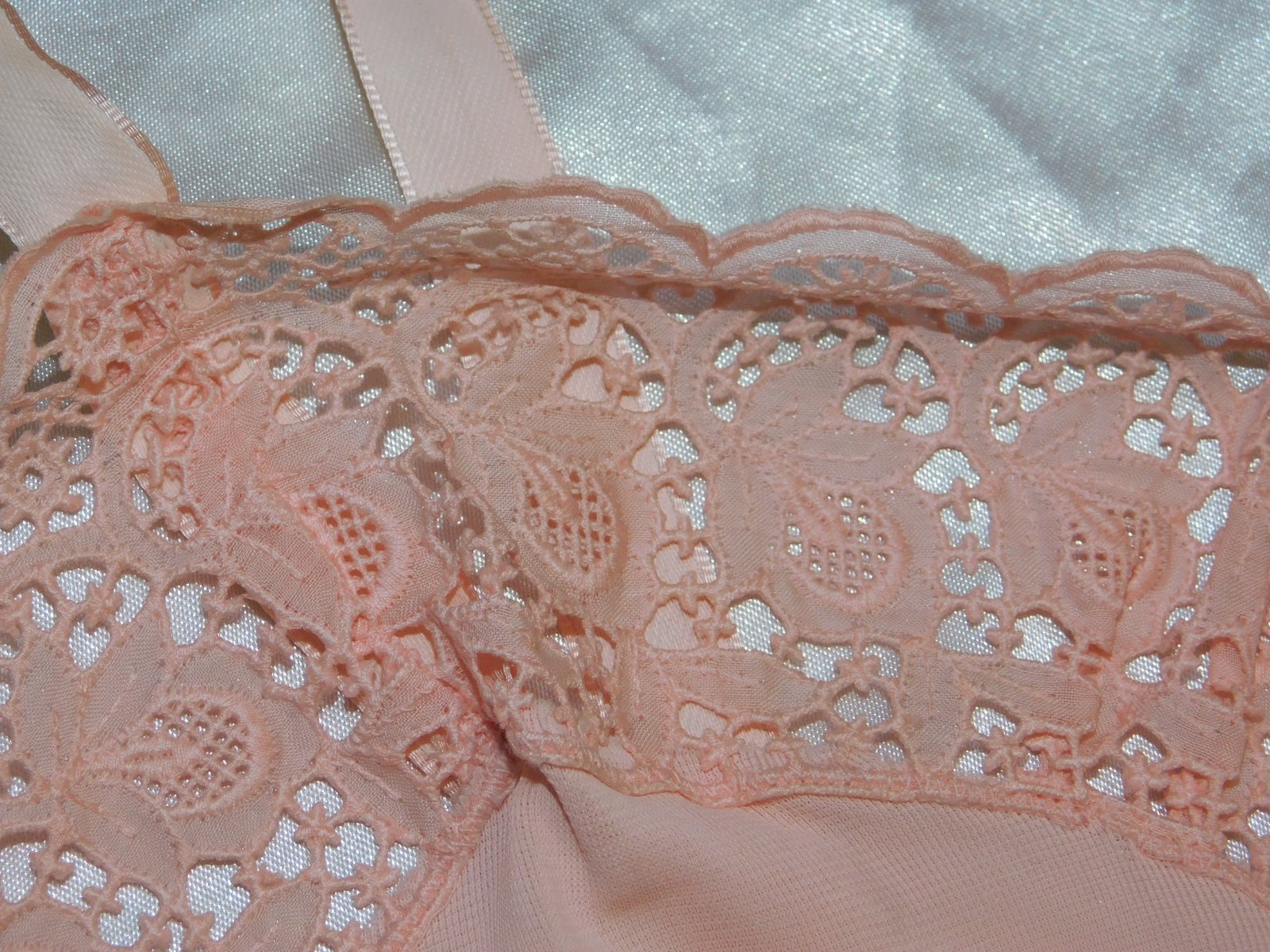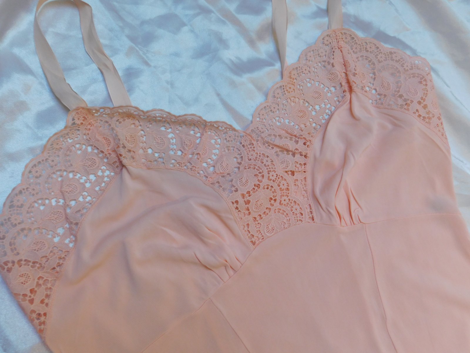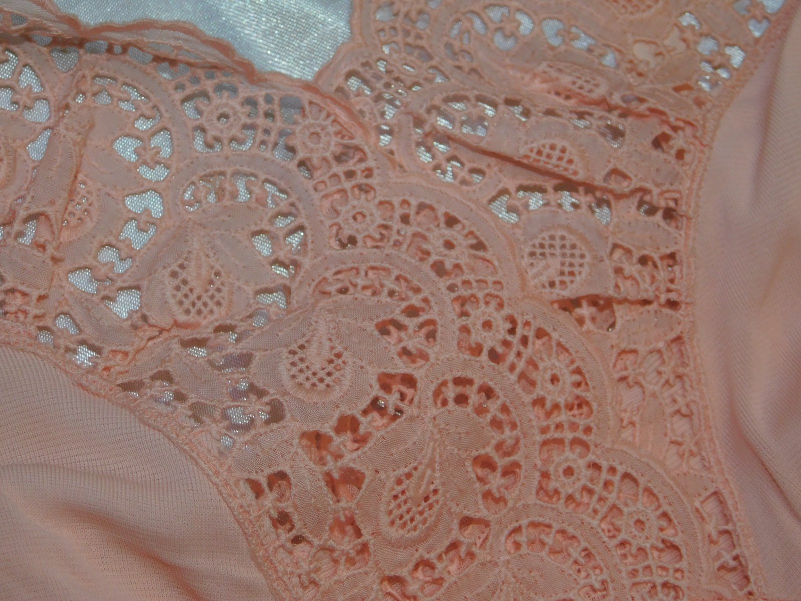 HELFFERICH Velmi pekna vintage nočna košela lososovej farby,lemovana luxunou čipkou. se36