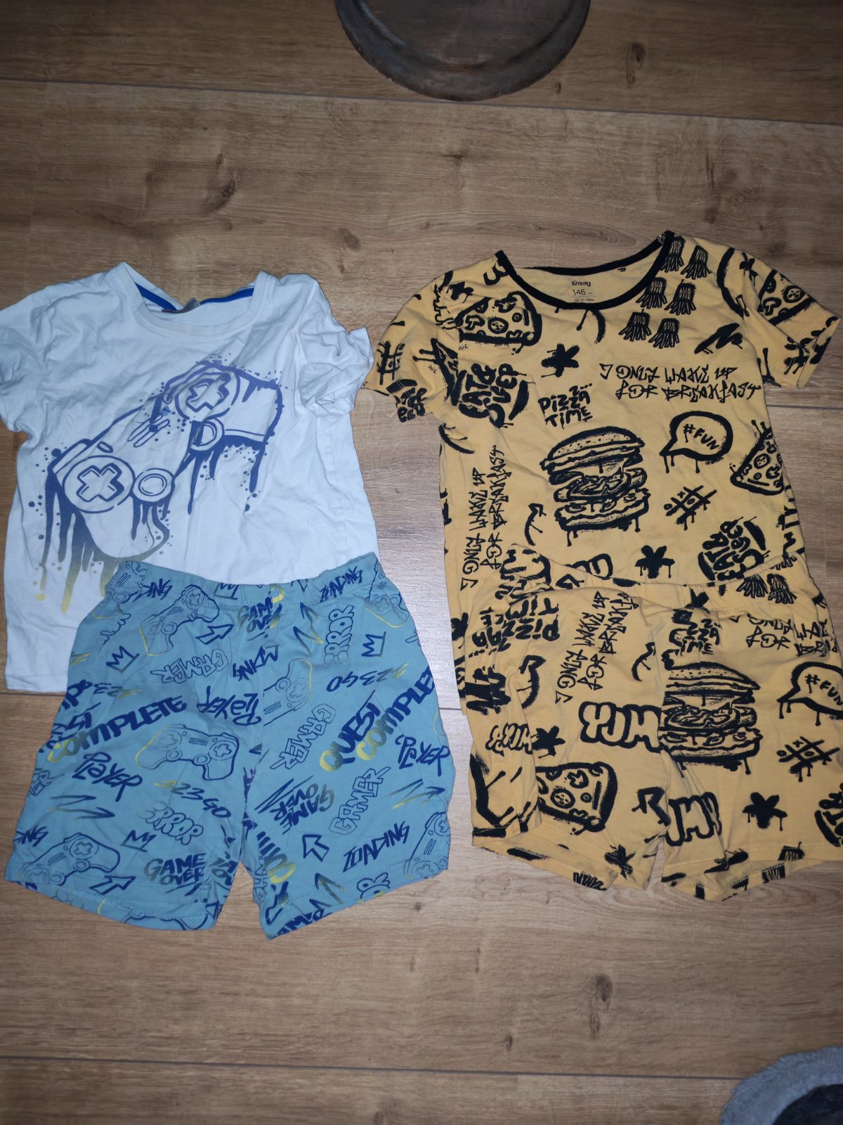 Dvoje krásne pyžamka s krátkym rukávom a krataskami, vo veľmi dobrom stave, vhodné aj do škôlky. Cena je za obe pyžamá spolu