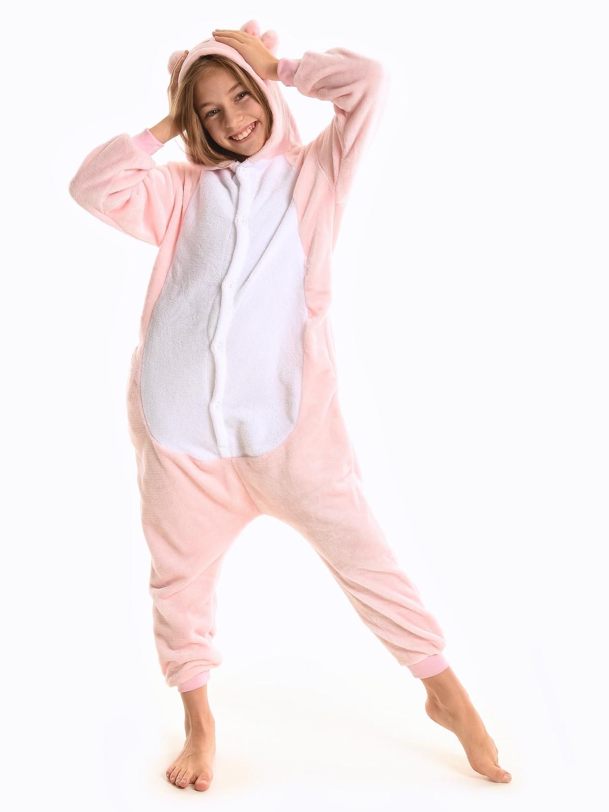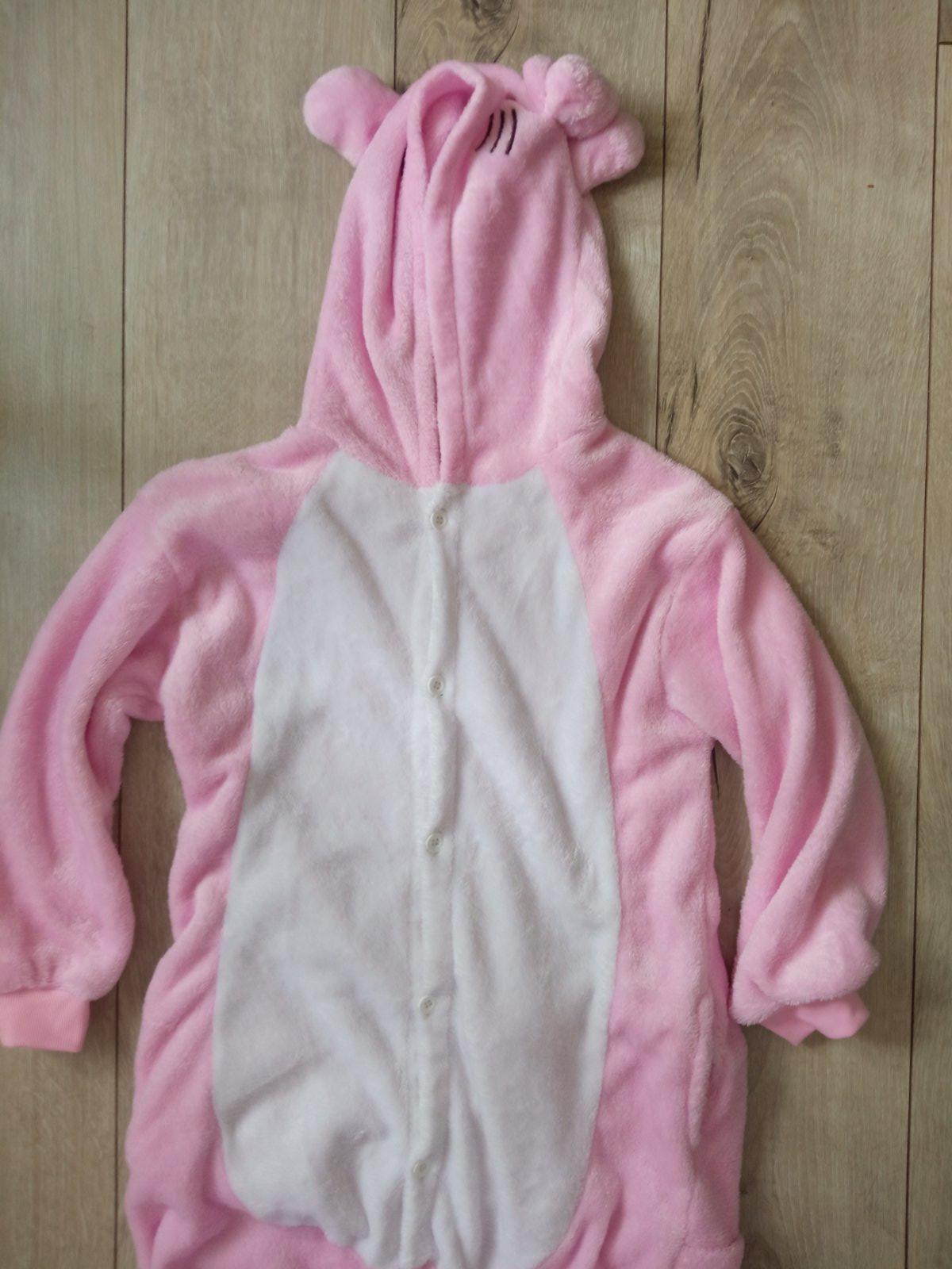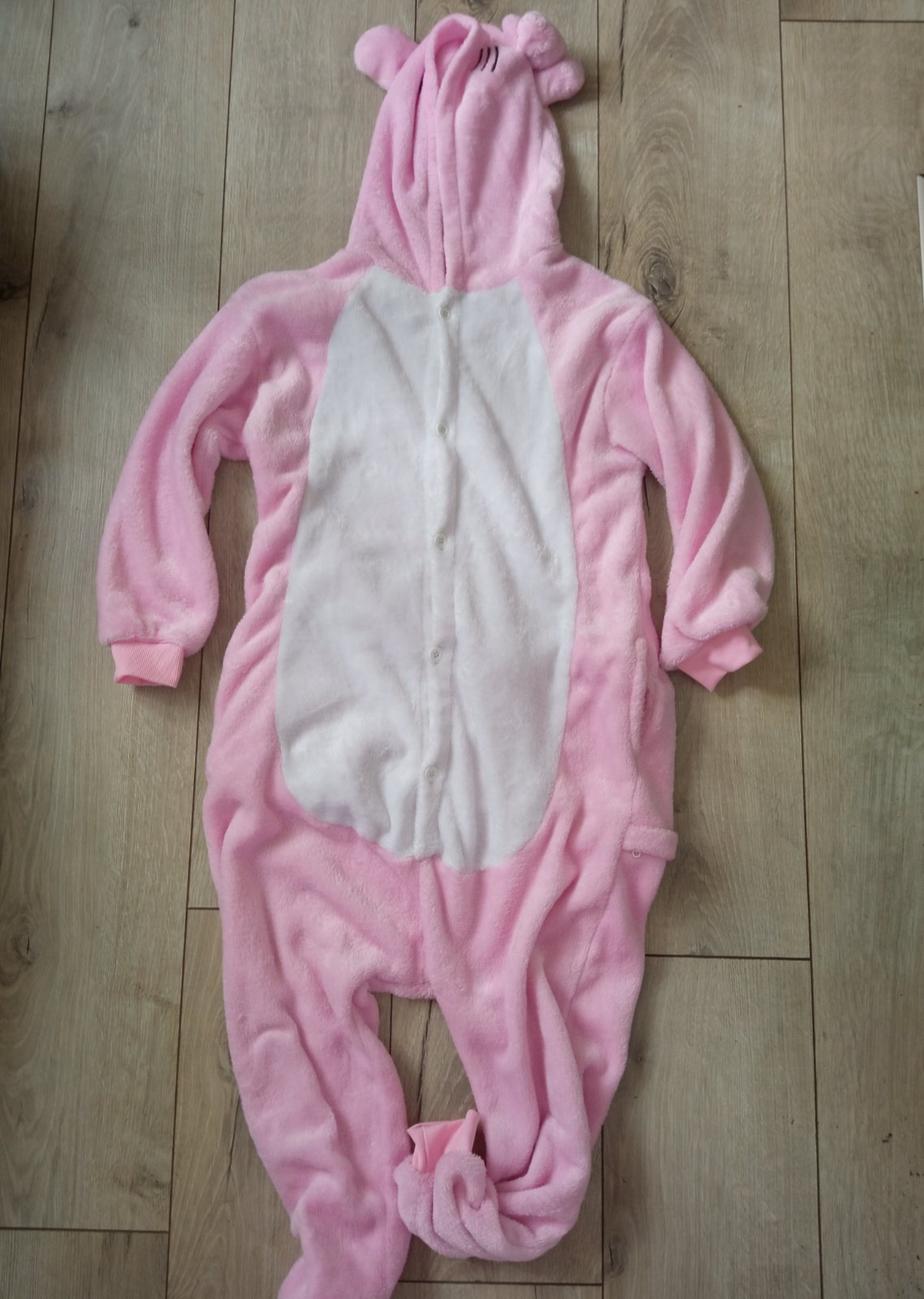 Dievčenský huňatý overal na spanie s kapucňou, zapínanie na gombíky, ukončenie na patent, na zadku zips, materiál 100%polyester.