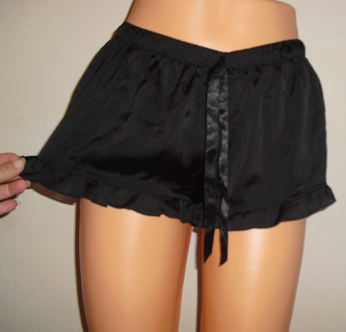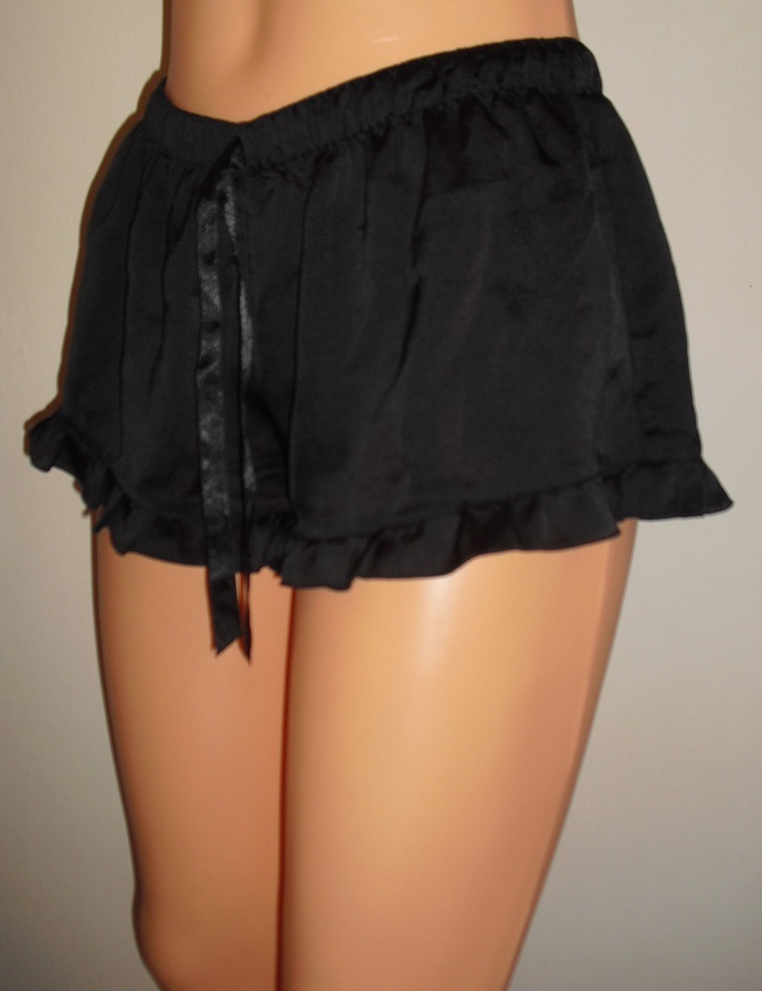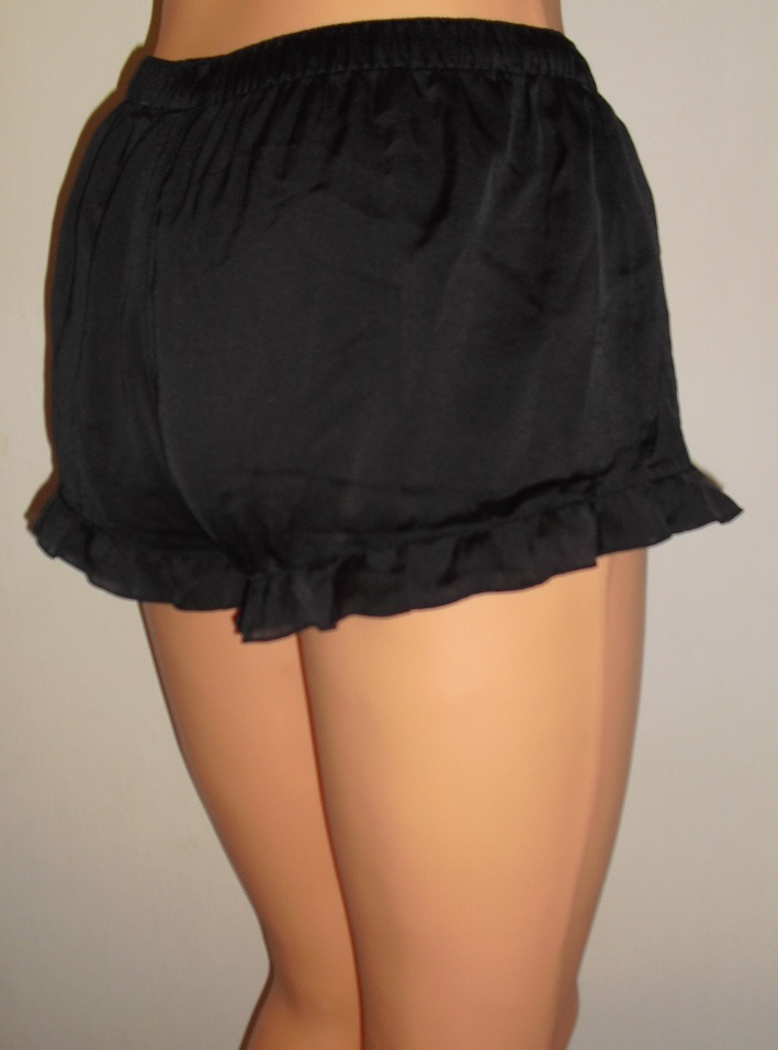 predam nadherne, vybornom stave, jemnucke, jemne priesvitne cierne krataskove nohavicky s volanikmi. velkost uvedena s, ale idu aj na s/m, m. elasticke pase 32,5 cm x 2 az 47 cm x 2, vyska bok 22,6 cm, od pasa k rozkroku predok 22 cm.