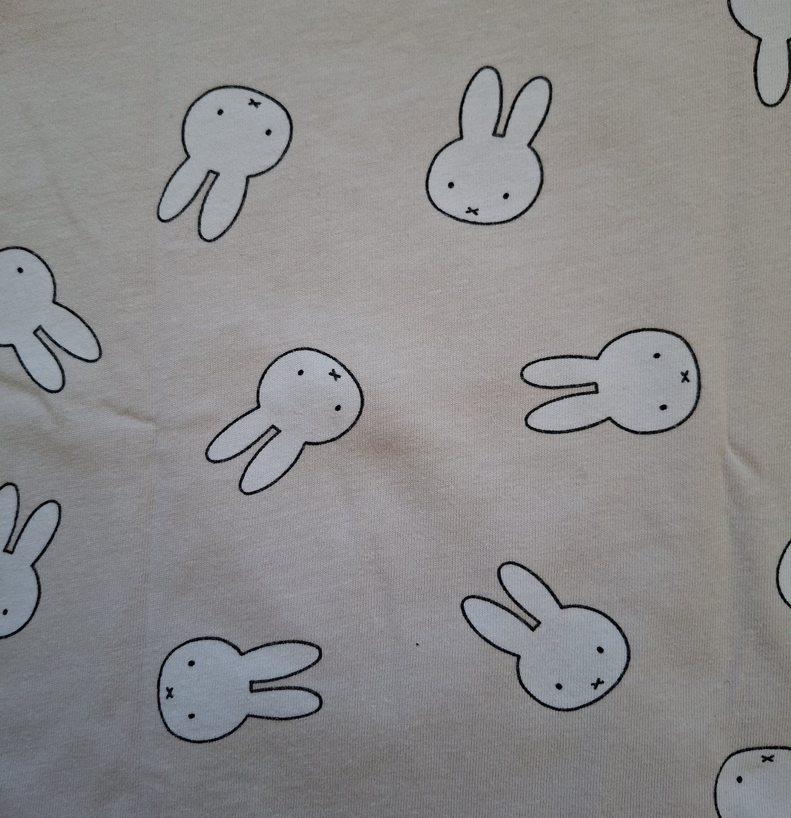 Roztomilé bavlnené pyžamko s motívom zajačika Miffy vo veľmi dobrom nosenom stave (bez dierok, fliačikov a žmolkov; jemne spraté). Pyžamo je vďaka jemnej krémovej farbe rovnako vhodné pre chlapcov, ako aj pre dievčatá. Značka: HM (odstrihnuté vnútorné štítky); veľkosť: 110/116 (4 - 6 rokov).