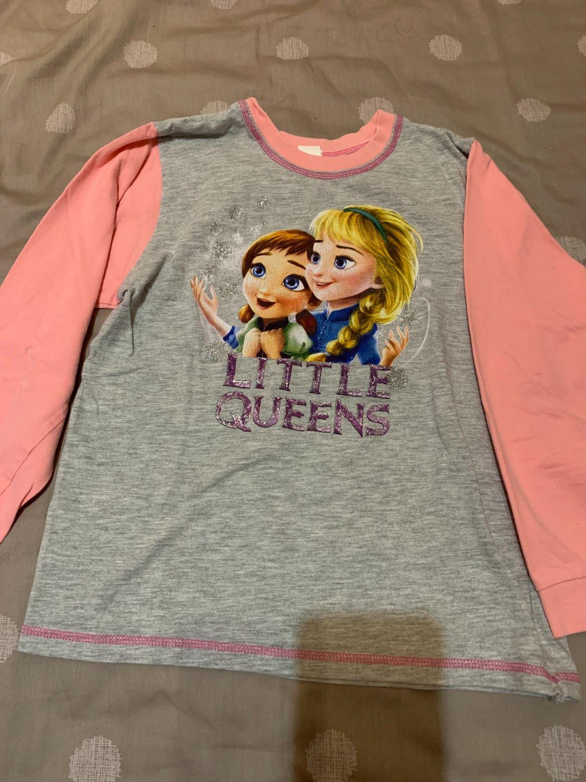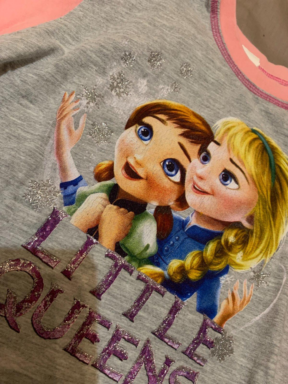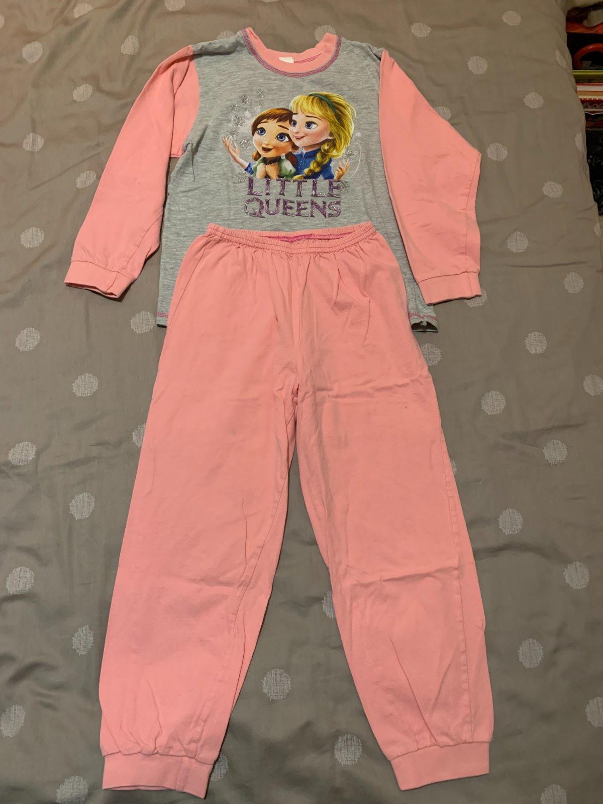 Pyžamko s motívom Frozen (Anna a Elsa) v dobrom stave, len na nohaviciach 2 malé fliačky.