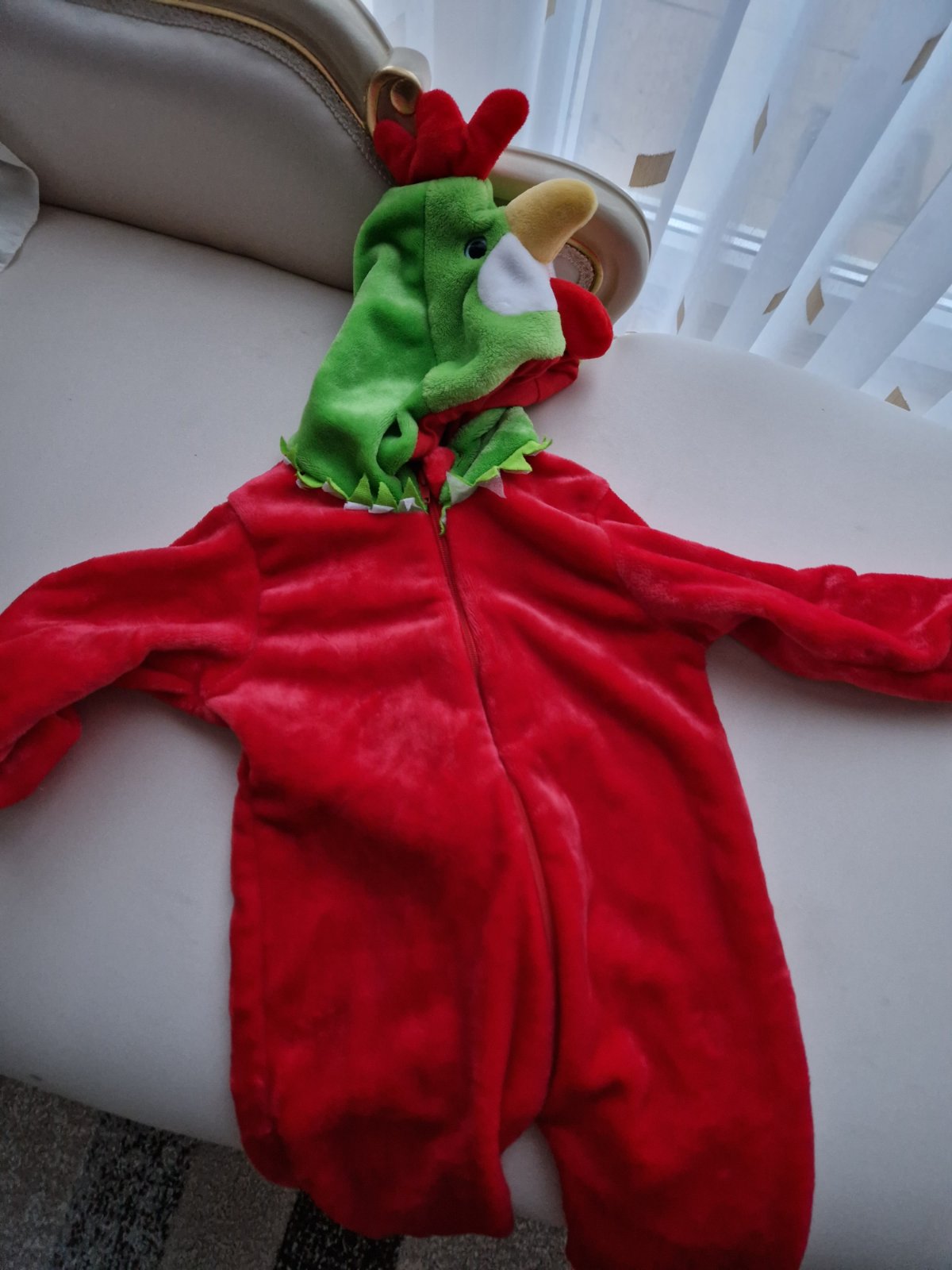 Teply chlpaty overal , vhodny ako teple pyzamo, domace oblecenie alebo maska na karneval.. Noseny, zachovaly, akurat tie oranzove lemy su trochu zmolkove. Dlzka od ramena po spodok 160 cm, od vyst...