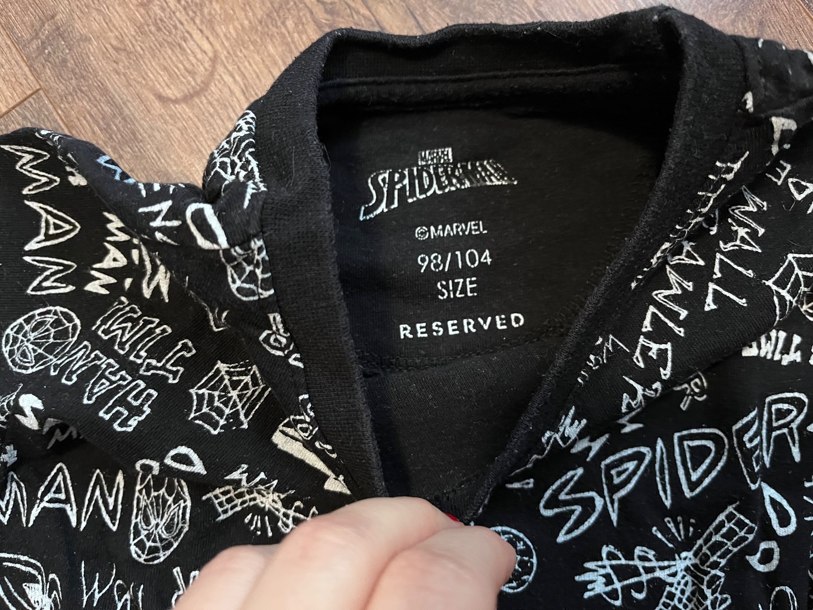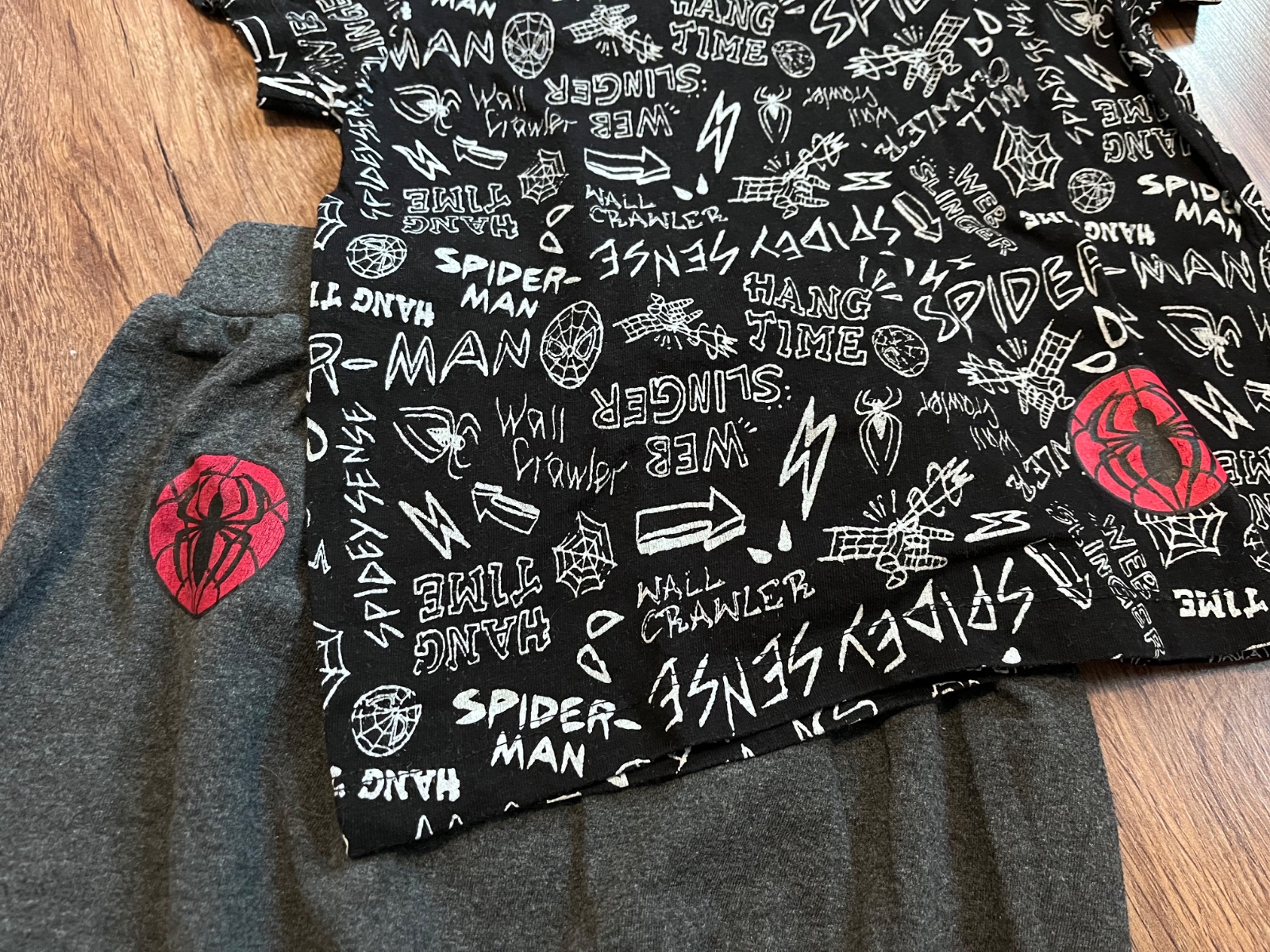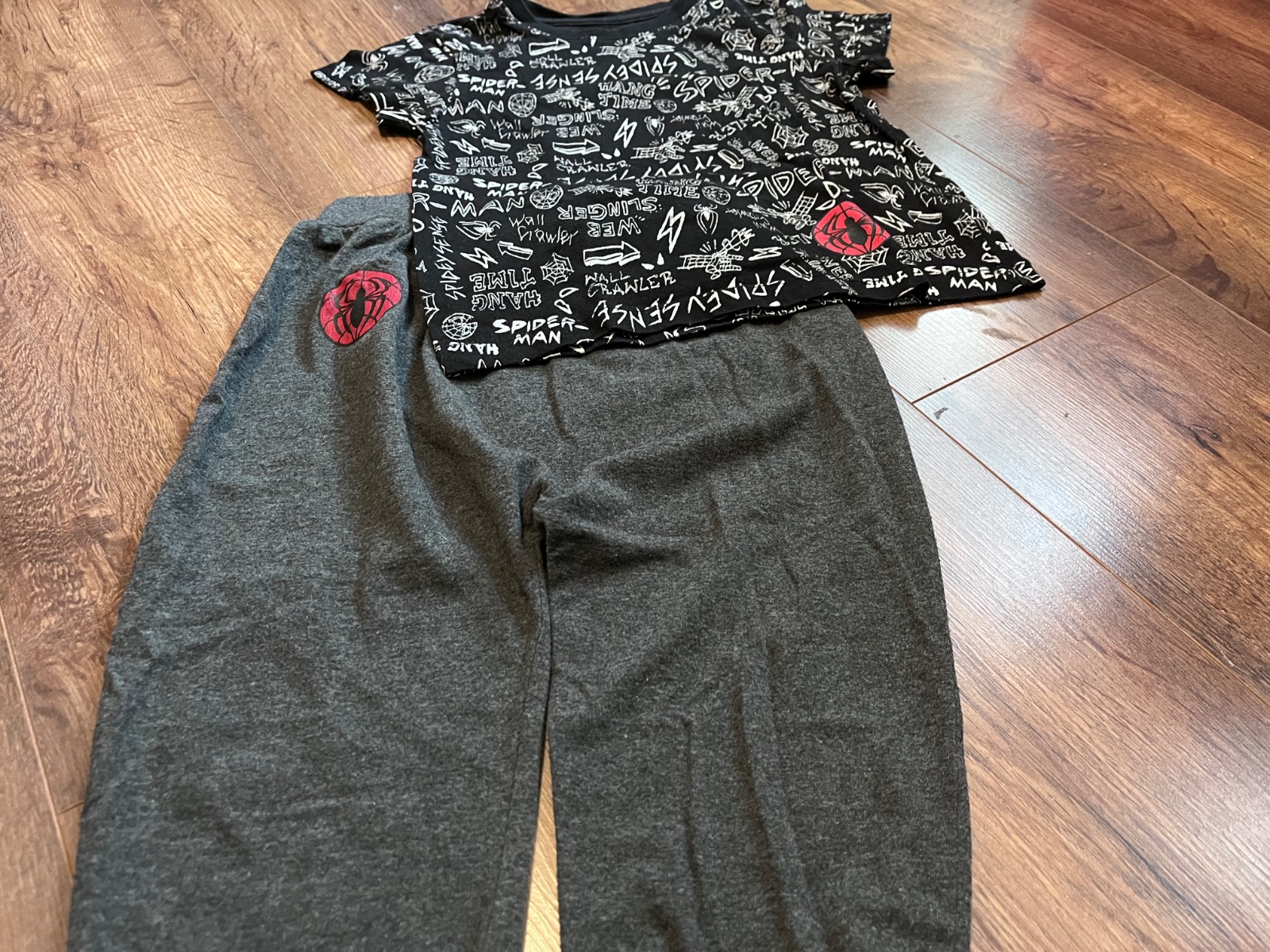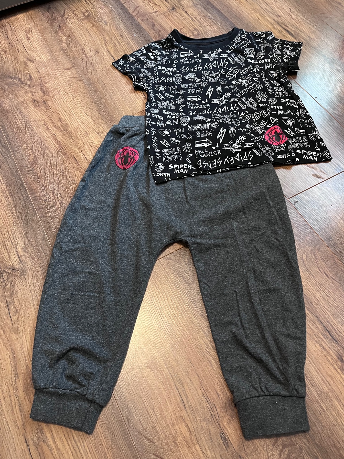 Pekný nosený stav, bez fľakov a poškodení. Nohavice sú šedé a tričko čierne.