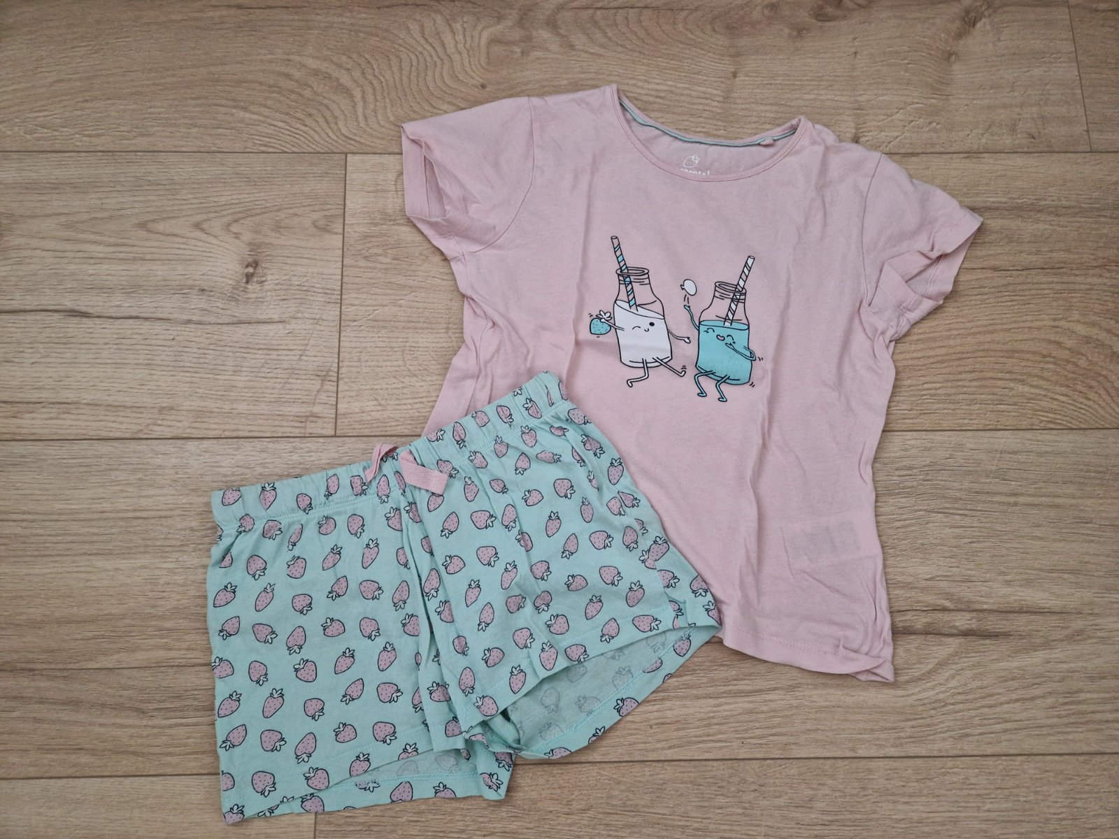 Ružovo tyrkysové pyzamko 134/140. Veľmi príjemné, veselá potlac. Peppers.