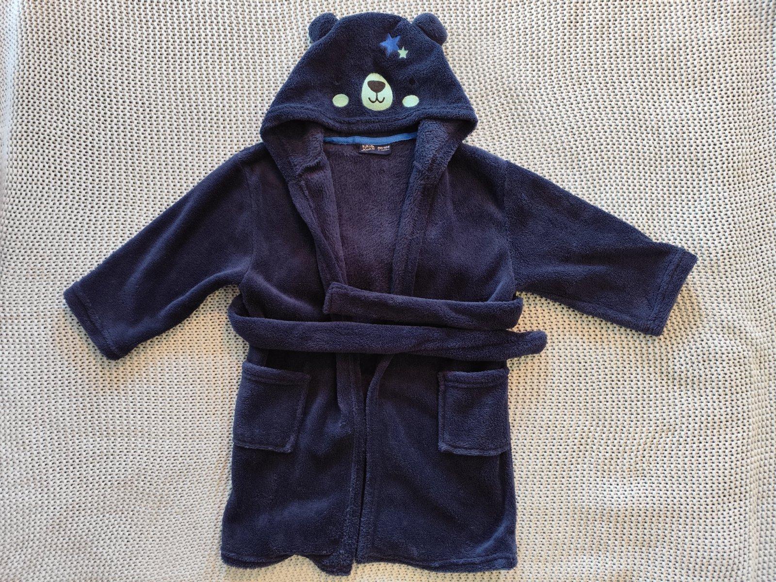 Krásny mäkký župan, značka George, veľkosť 98/104, 3 až 4 roky. Môj syn je vyšší, teda už je mu malý. Veľmi rád ho nosil aj doma aj na kúpalisko