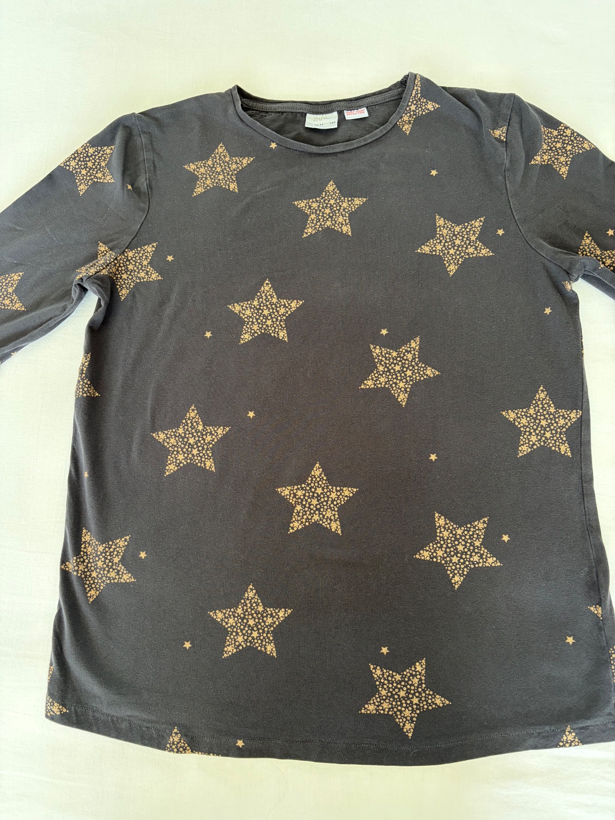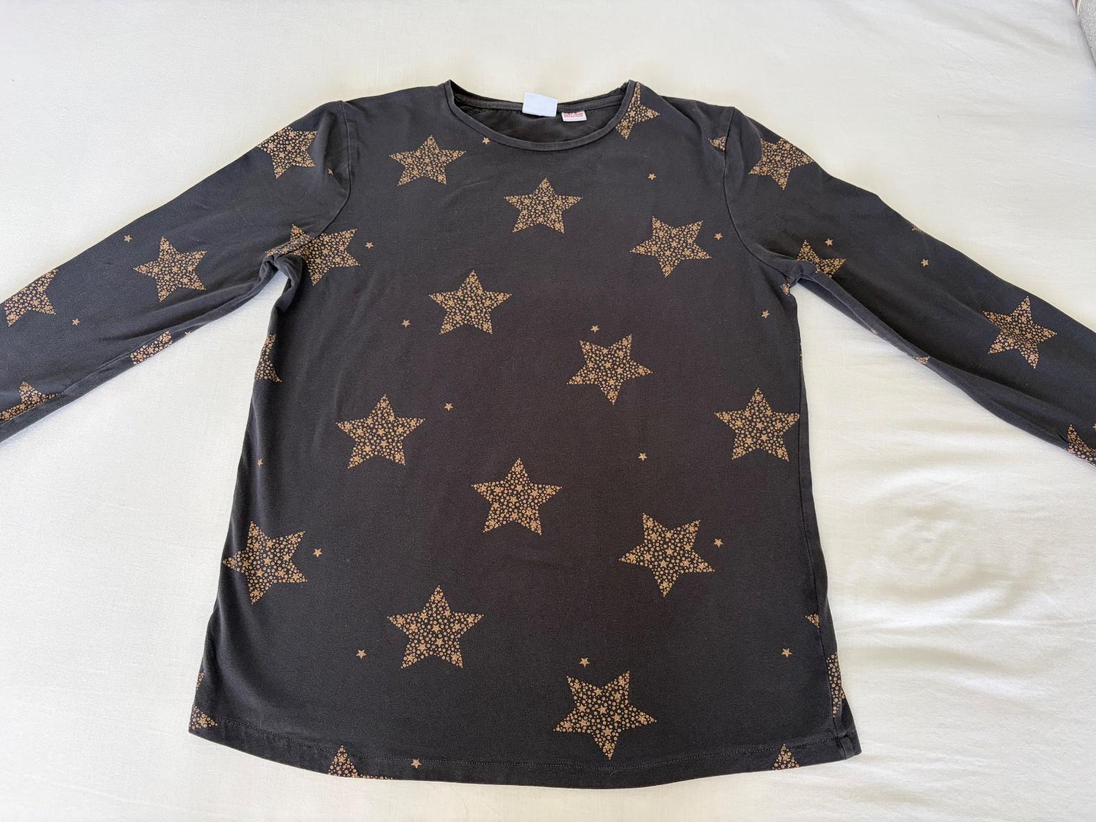 bavlnen pyzamko na 13r, nohavice naju 7/8 dlzku, trickoma 2milimetrovu dierocku na sve na rukave na ramene, inak v dobrom stave