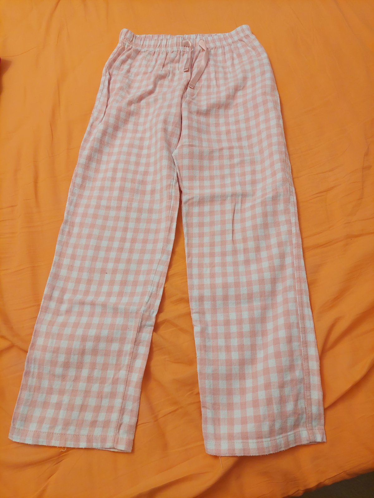 Predám nosené pyžamo. Vrch biela, nohavice hrubší material, ružové. Nohavice dl:80cm, š.: 30cm, vrch dl:52cm, rukáv od krku: 59cm. Veľkost 134/140.