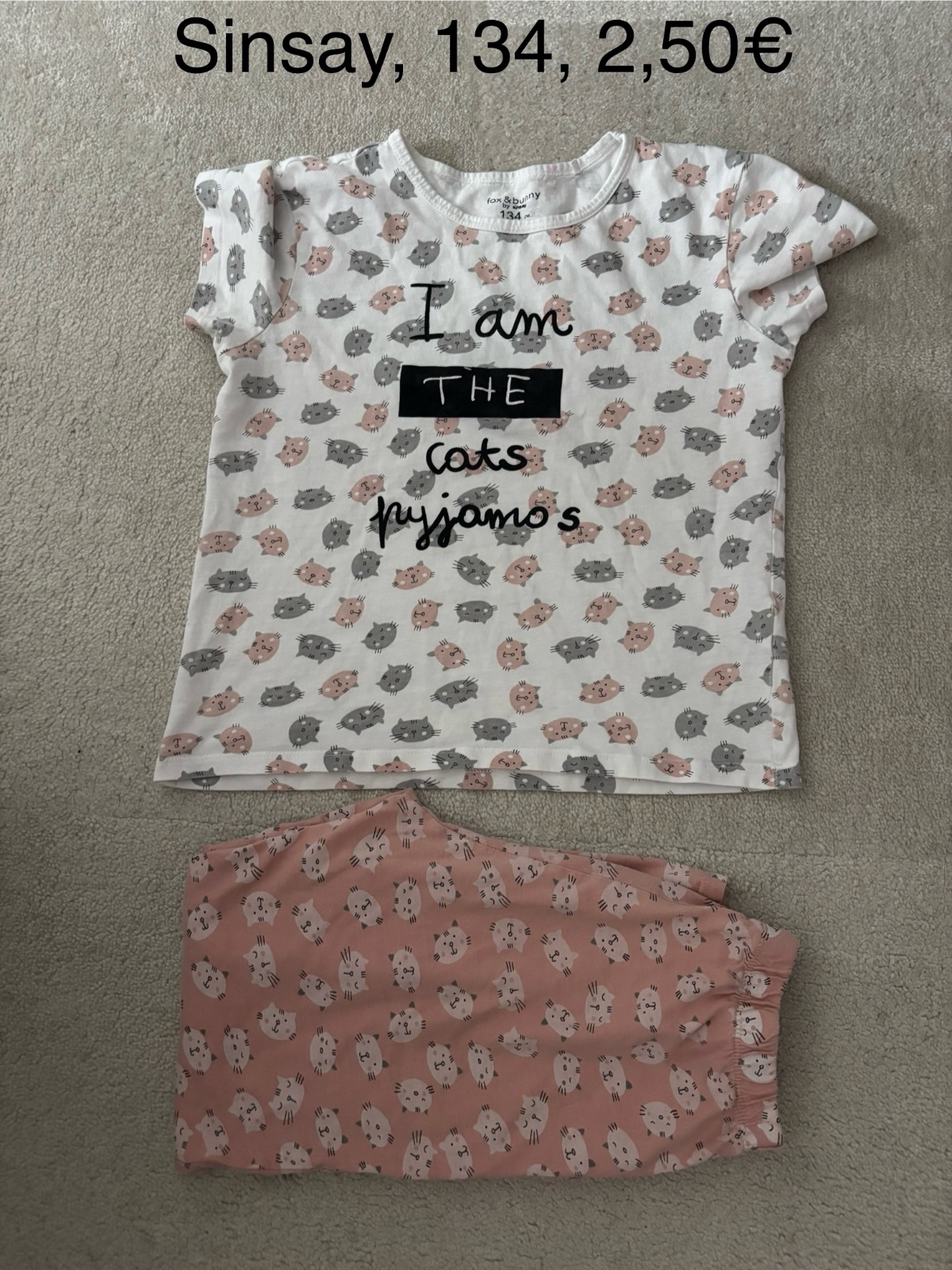 Pyžamo v dobrom stave. Nohavice sú 134 ale vrh je 140 takže môže byt aj na väčšie dievčatko. Nohavice 72cm