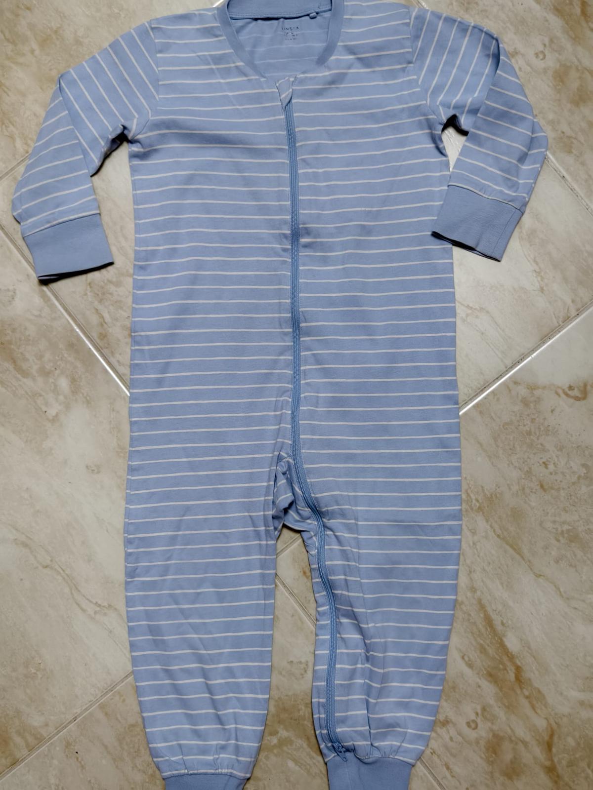 Kvalitne bavlnene pyzamo Lindex so zapinanim na gombiky a medzi nozickami na cvocky, s prednym vreckom, neznicitelne, neposkodene, vydrzalo nam ako dvojcislo 92-98. Nosili by sme ho dodnes :)